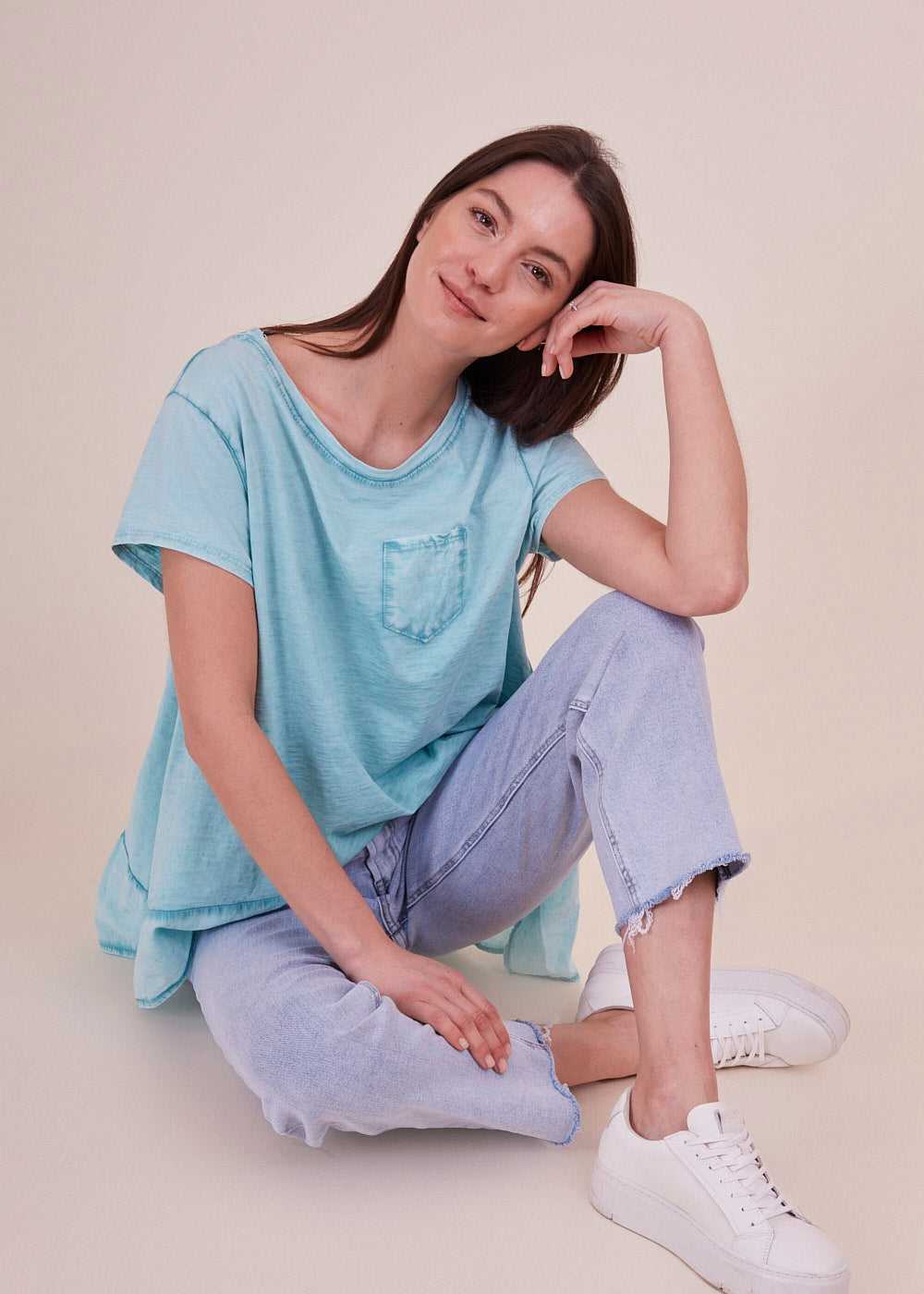 Ein Tag mit Radtour und anschließendem Ausflug zum See ist geplant? Das locker geschnittene Shirt schränkt dich in deiner Bewegungsfreiheit nicht im Geringsten ein und ist dank seines weichen Materials wunderbar bequem zu tragen. Es hat einen A-linienförmigen Schnitt und ein leicht verlängertes Rückenteil mit seitlichen Schlitzen. Mit einer kleinen Brusttasche. Einfach besonders!