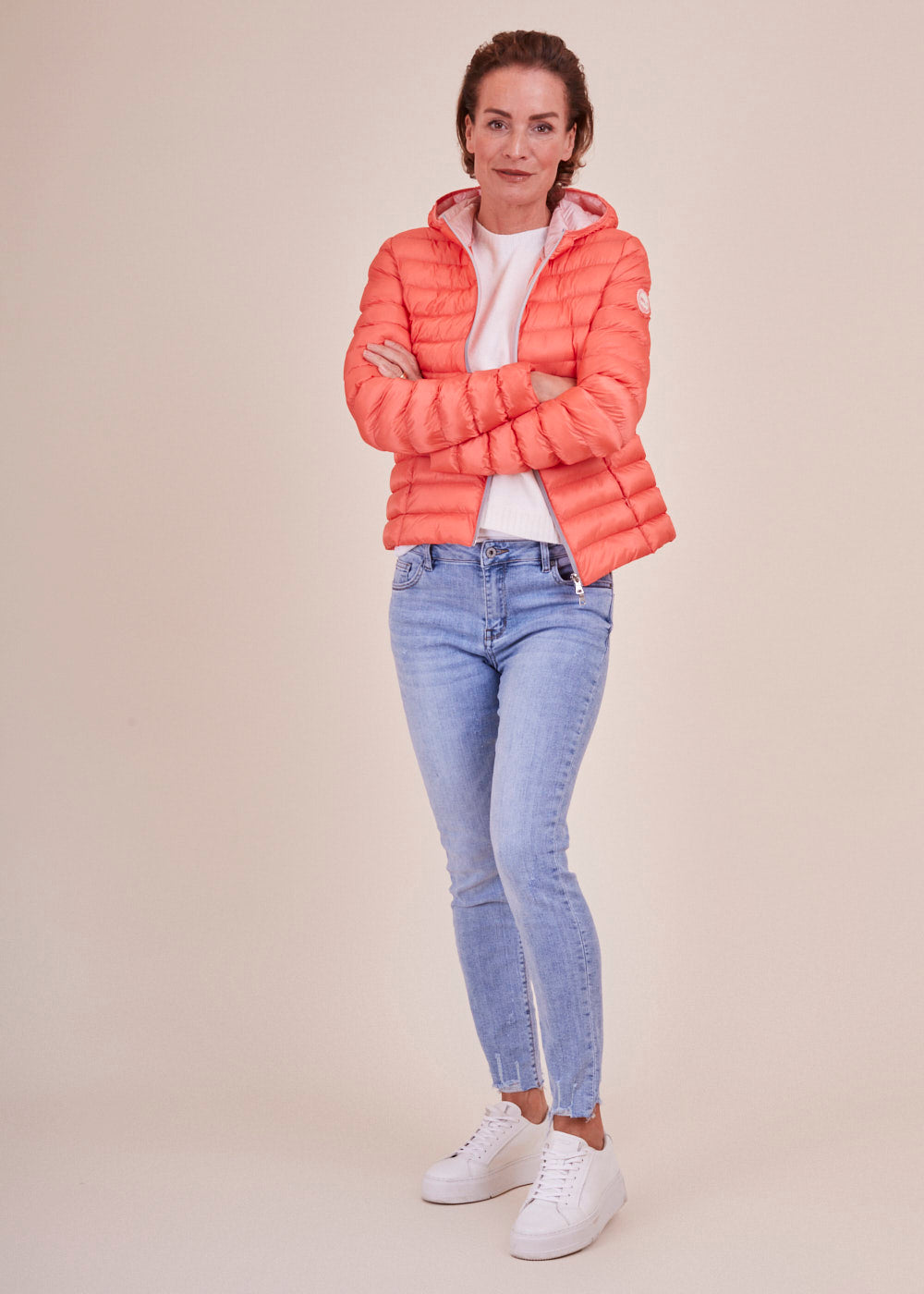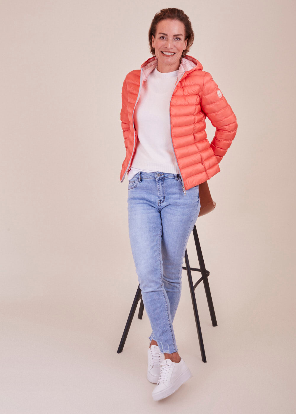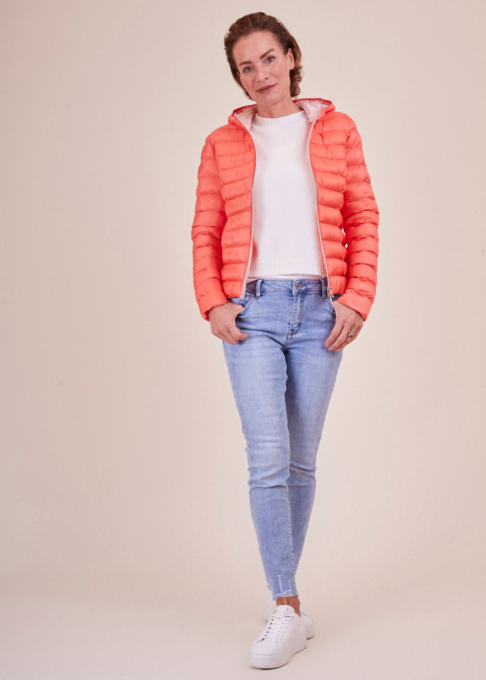 Das Model trägt bei einer Körpergröße von 179 cm die Konfektionsgröße S. Diese Steppjacke fällt sehr schmal aus, bestellt daher lieber eine Nummer größer.