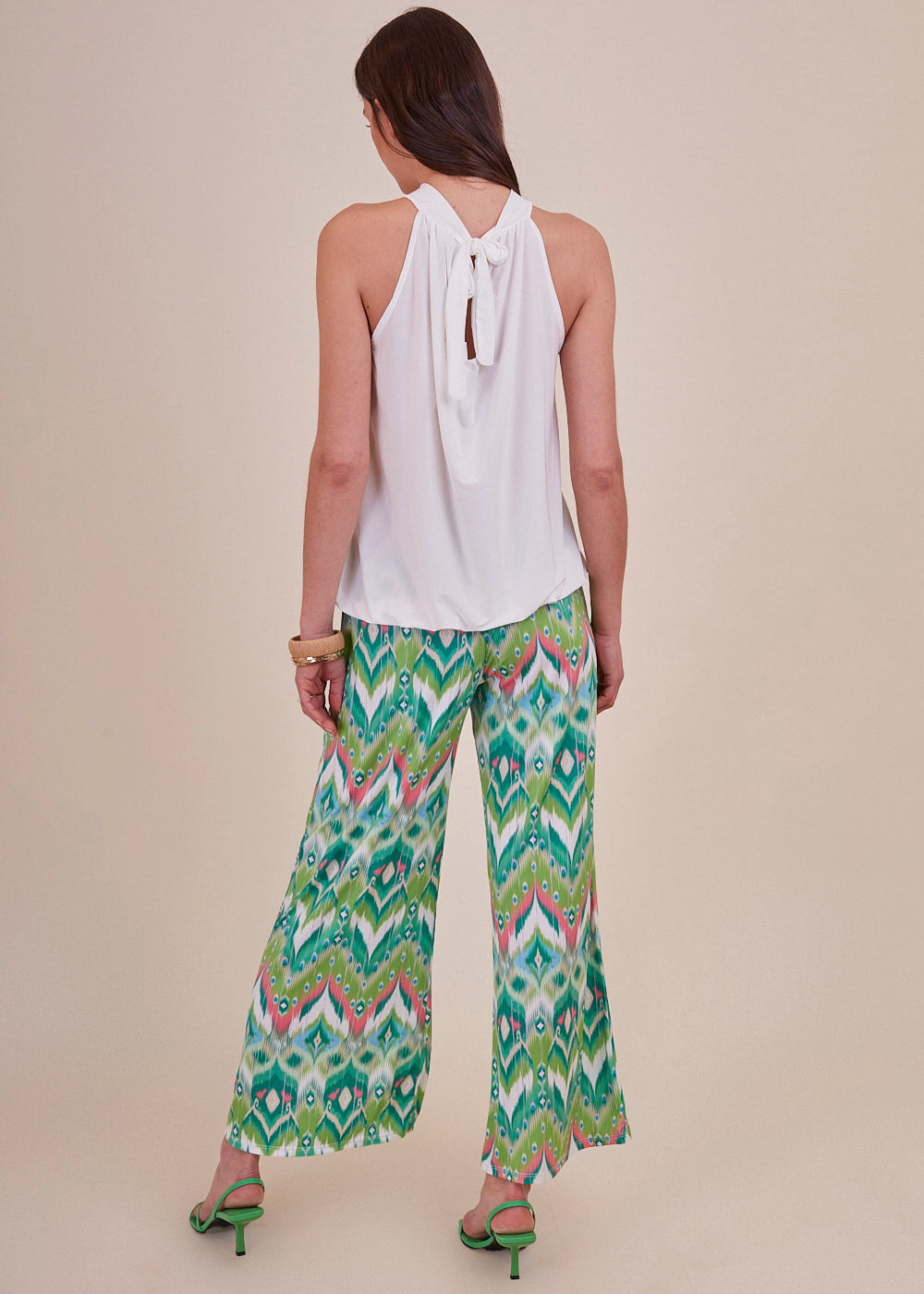 Ein Traum von Druck. Diese besondere Fashionhose aus einer wunderbaren knitterfreie Ware wartet nur darauf dich bei deiner nächsten Urlaubsreise zu begleiten. Die frischen Farben lassen sich wunderbar mit weiß kombinieren. Für unsere Fashionista haben wir auch noch das passende Print Top in unserem Shop. Einfach wunderschön und elegant!