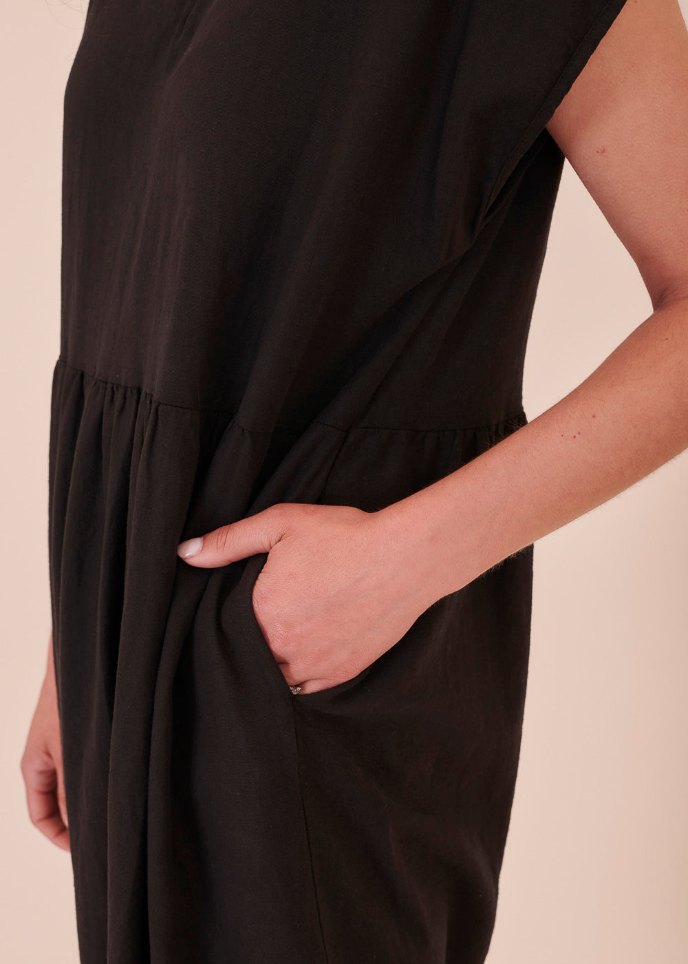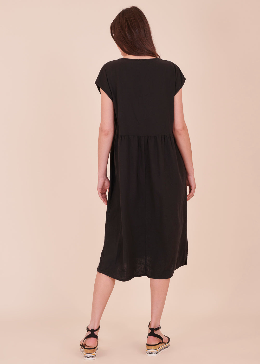 Dieses lässig geschnittene Leinenkleid schreit förmlich nach dem Sommer! Der luftig leichte Schnitt des Kleides trägt sich, auch noch an den heißesten Tagen, wunderbar. Der V-Ausschnitt und die seitlichen Eingriffstaschen geben dem ganzen eine gewisse Lässigkeit. Einfach perfekt für die nächste Shoppingtour mit deiner besten Freundin.
