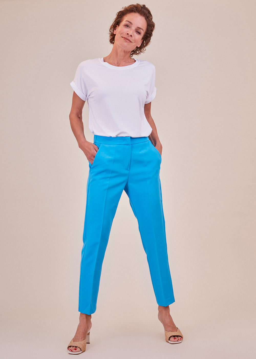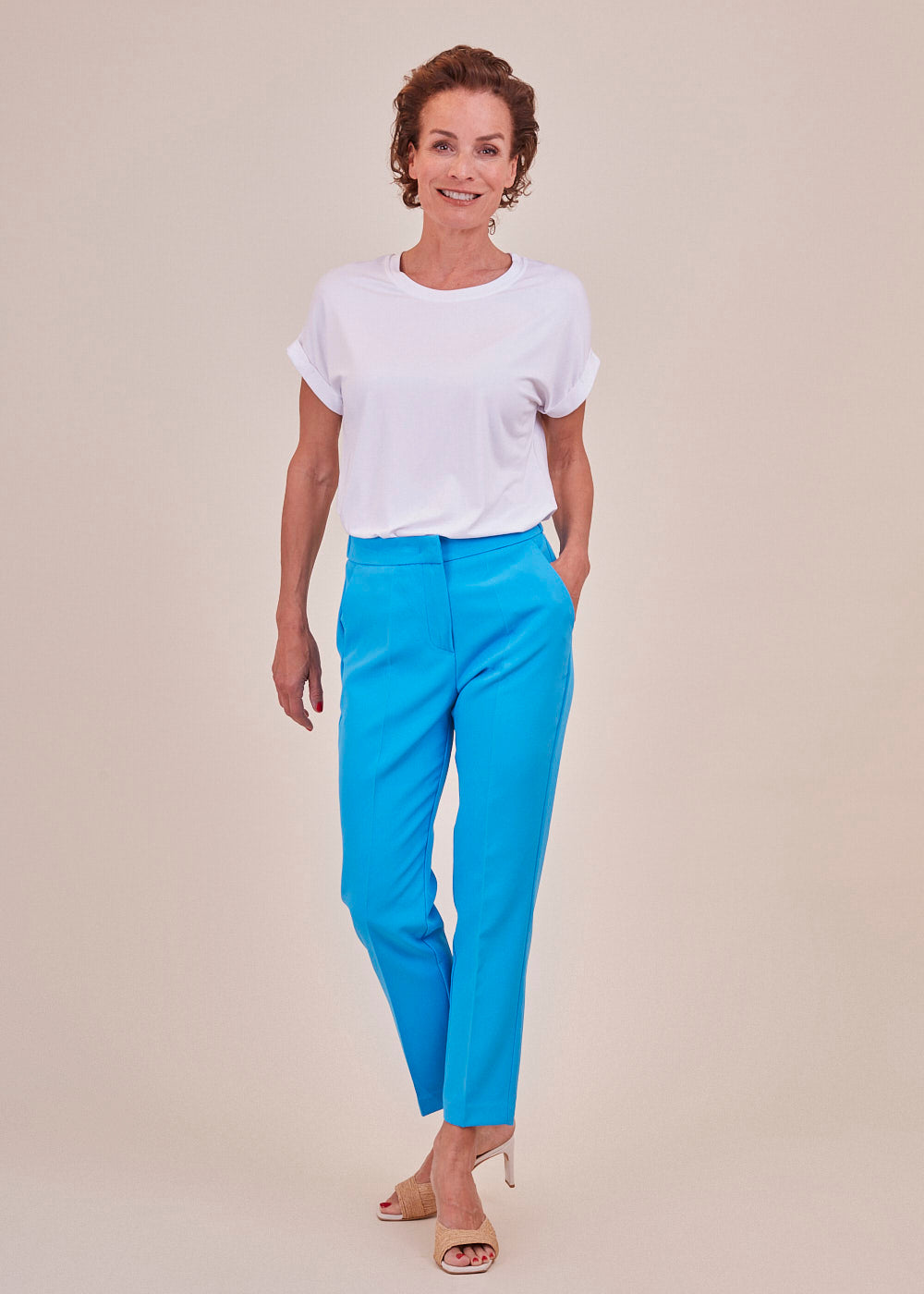 Diese Hose bringt einen modernen Look mit komfortablen Eigenschaften in Einklang. Das angesagte Design und die softe Qualität machen es möglich. Der Bund ist hinten mit einem Stretch-Bund ausgestattet, während der weiche Material-Mix um elastische Eigenschaften erweitert wird. Kombiniere diese Hose gerne mit einem Shirt. Es gibt zusätzlich noch einen passenden Blazer in unserem Shop.