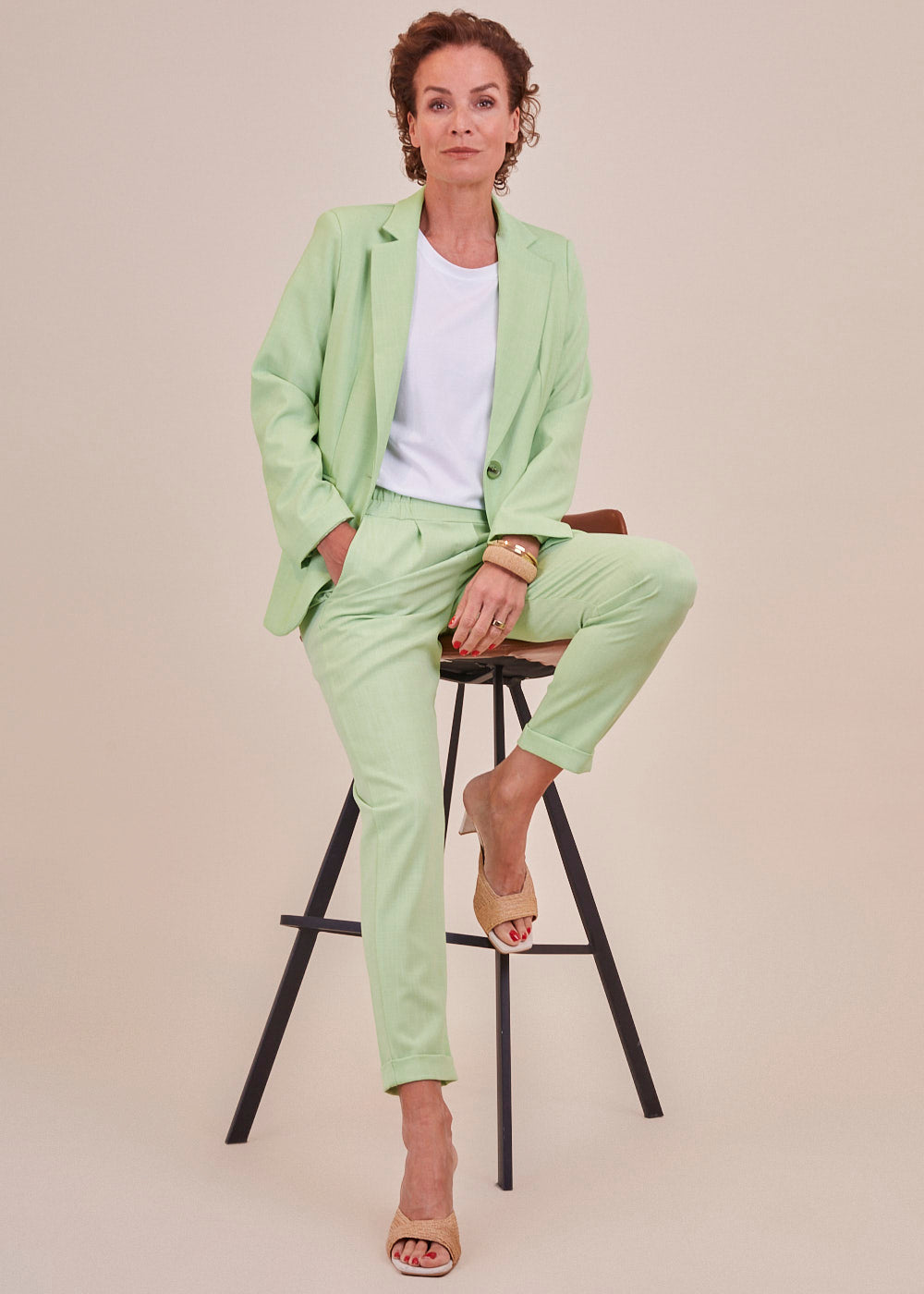 LIME! Unglaublich, wie lässig ein Blazer wirken kann: Wir haben den Klassiker in der modischen Variante. Der Blazer hat lässigen Schnitt.Fantastisch in Kombination mit der dazugehörigen Bundfalten-Hose oder leger getragen mit einer Blue-Jeans.