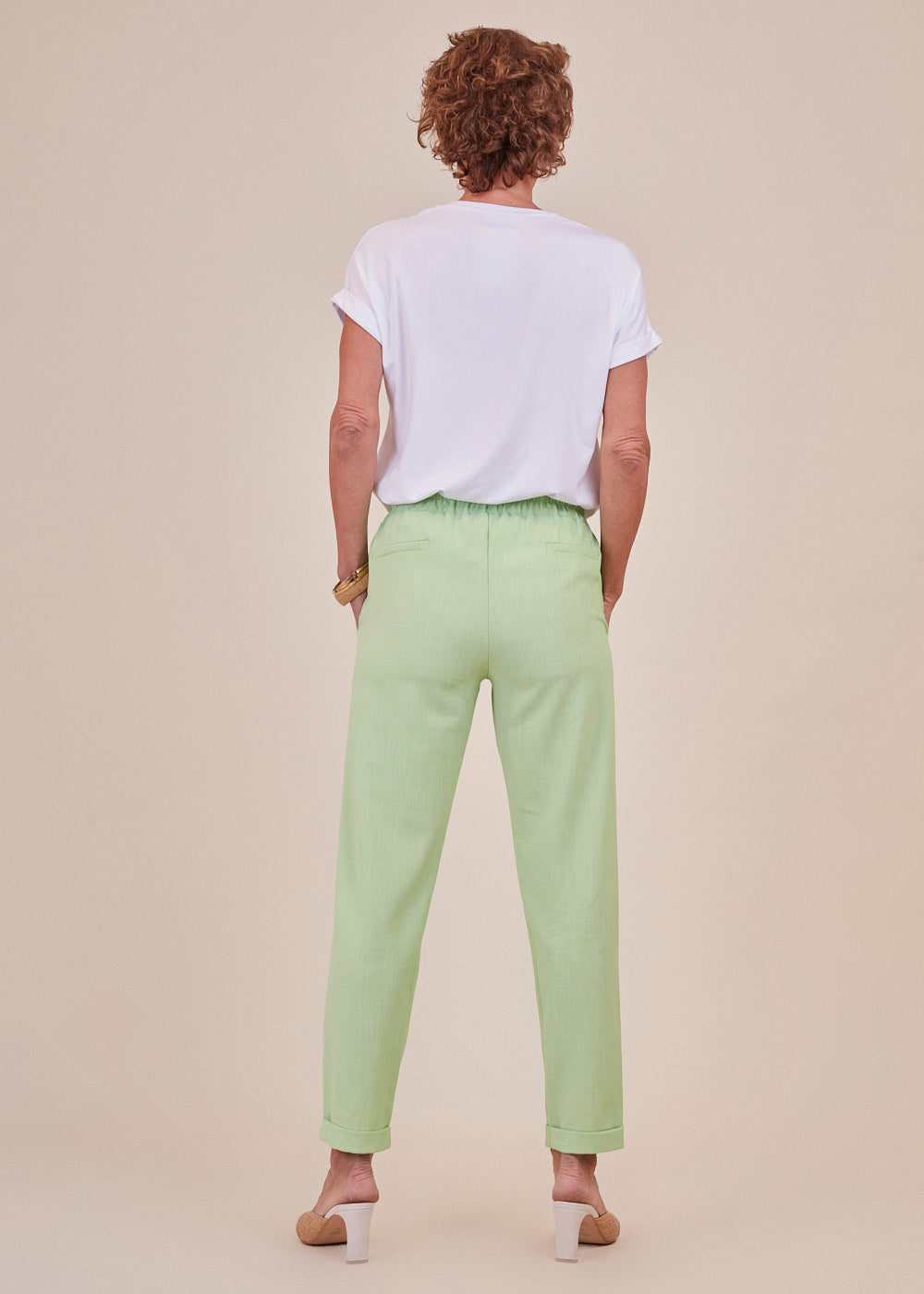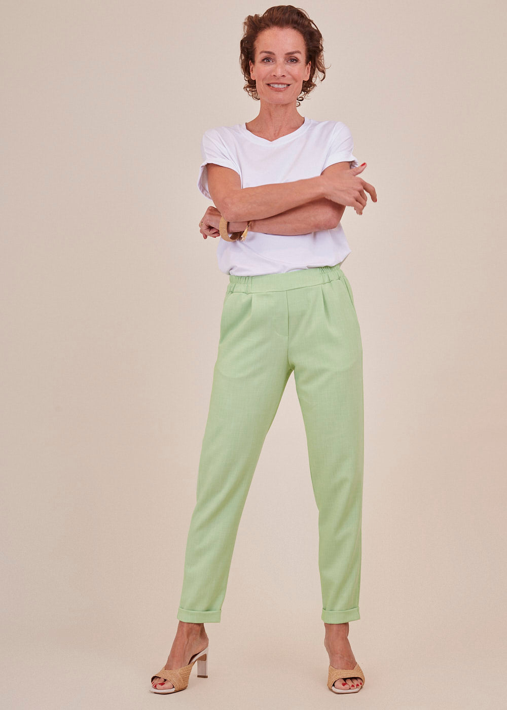 Tolle Bundfaltenhose mit geradem Bein. Die Hose sitzt besonders lässig durch seinen Gummizug und hat seitliche Eingriffstaschen. Besonders toll in Kombination mit dem passenden Blazer und einer weißen Bluse. Einfach lässig und stylisch.