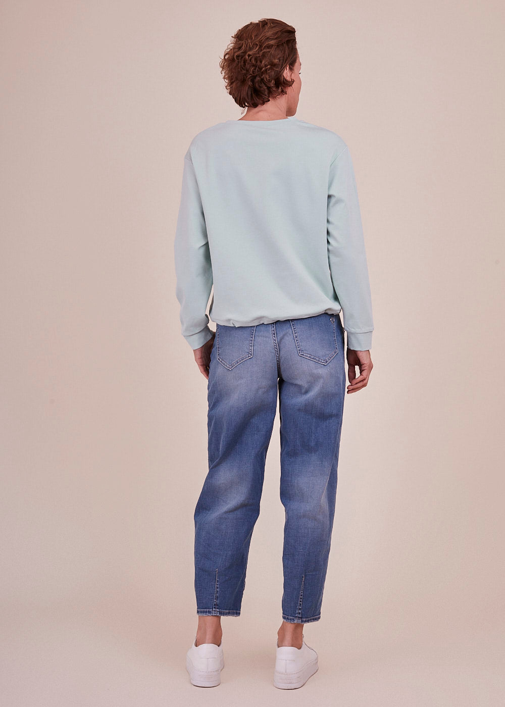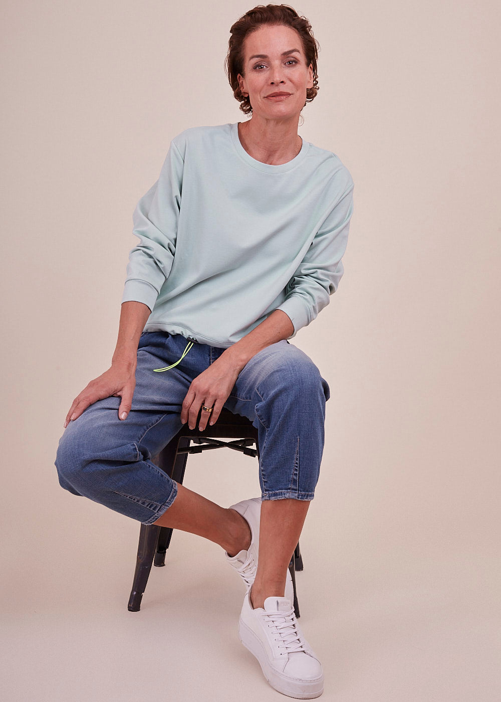 Leichtes Shirt mit Tunnelzug am Bündchen. Das Shirt hat lange Arme und Bündchen am Ärmel. Er eignet sich wunderbar für einen Casual-Style. Die frische Unifarbe verleiht jedem Outfit eine tolle Optik und lässt sich dadurch ideal kombinieren. Durch seinen Tunnelzug lässt er sich besonders gut von der Länge variieren und eignet sich auch daher perfekt für höher geschnittene Hosen.