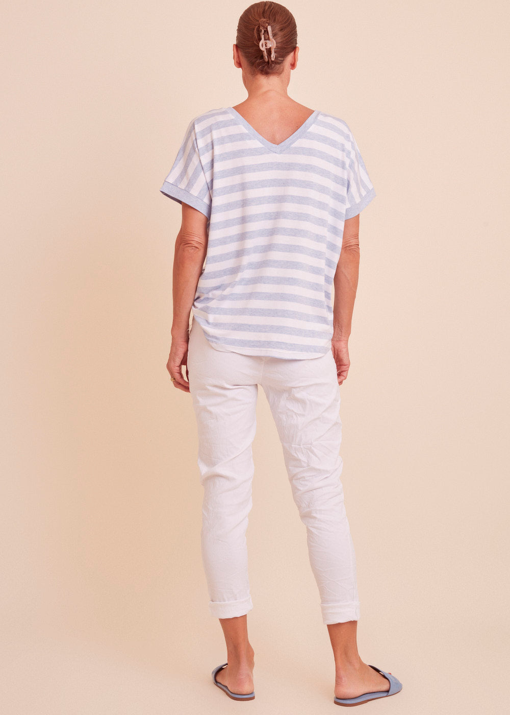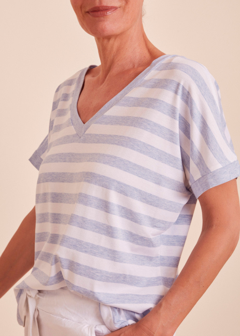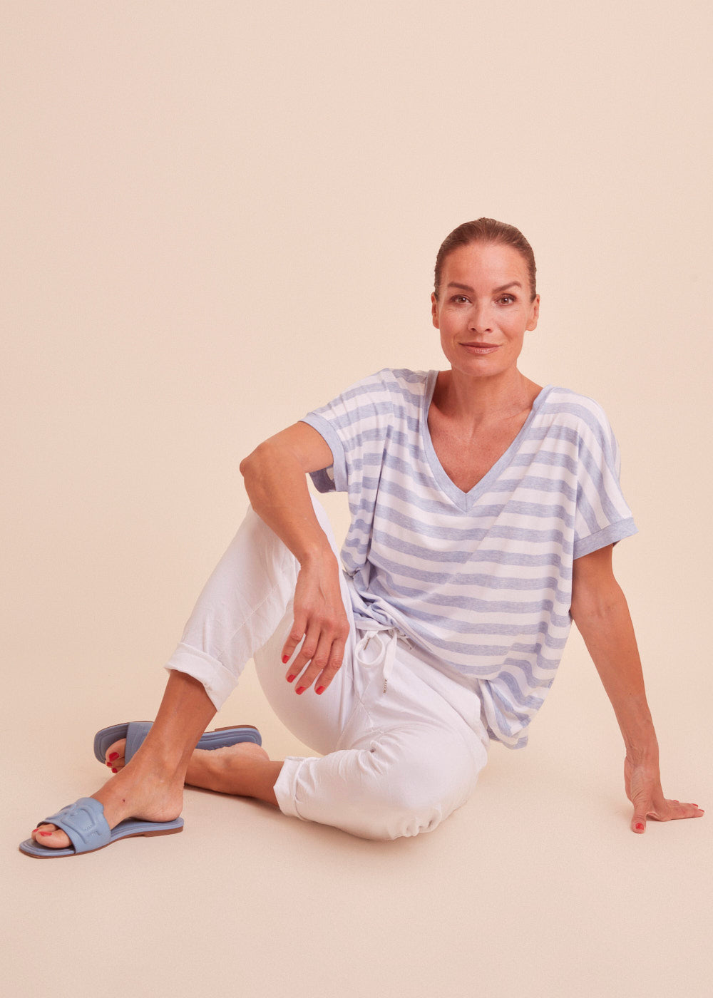 Wir lieben unsere Ringelshirts! Das wunderschön geschnittene Shirt mit V-Ausschnitt, lässt dich Strahlen. Die frischen Farben passen perfekt in den Sommer und lassen sich hervorragend mit weiß formatieren.