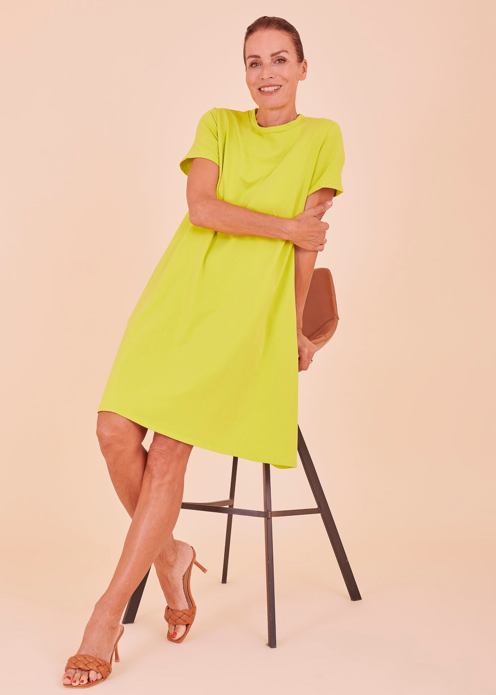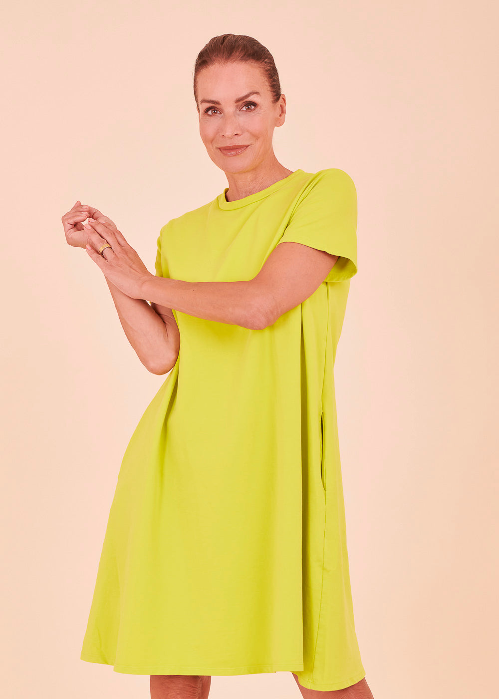 Unser geliebtes A-linienförmiges Kleid mit seitlichen Eingriffstaschen bringt wirklich jeden zum Strahlen. Die Farbe und der moderne Schnitt eignet sich perfekt für alle die es einfach besonders lieben. Das Sommerkleid hat eine gefällige A-Linien Form, was im Grunde jeder Frau eine super Figur zaubert. Lieblich umflattert das Kleid den Körper und sorgt auch Dank seiner angenehmen Länge bis zum Knie, für absolute Wohlfühlmomente.