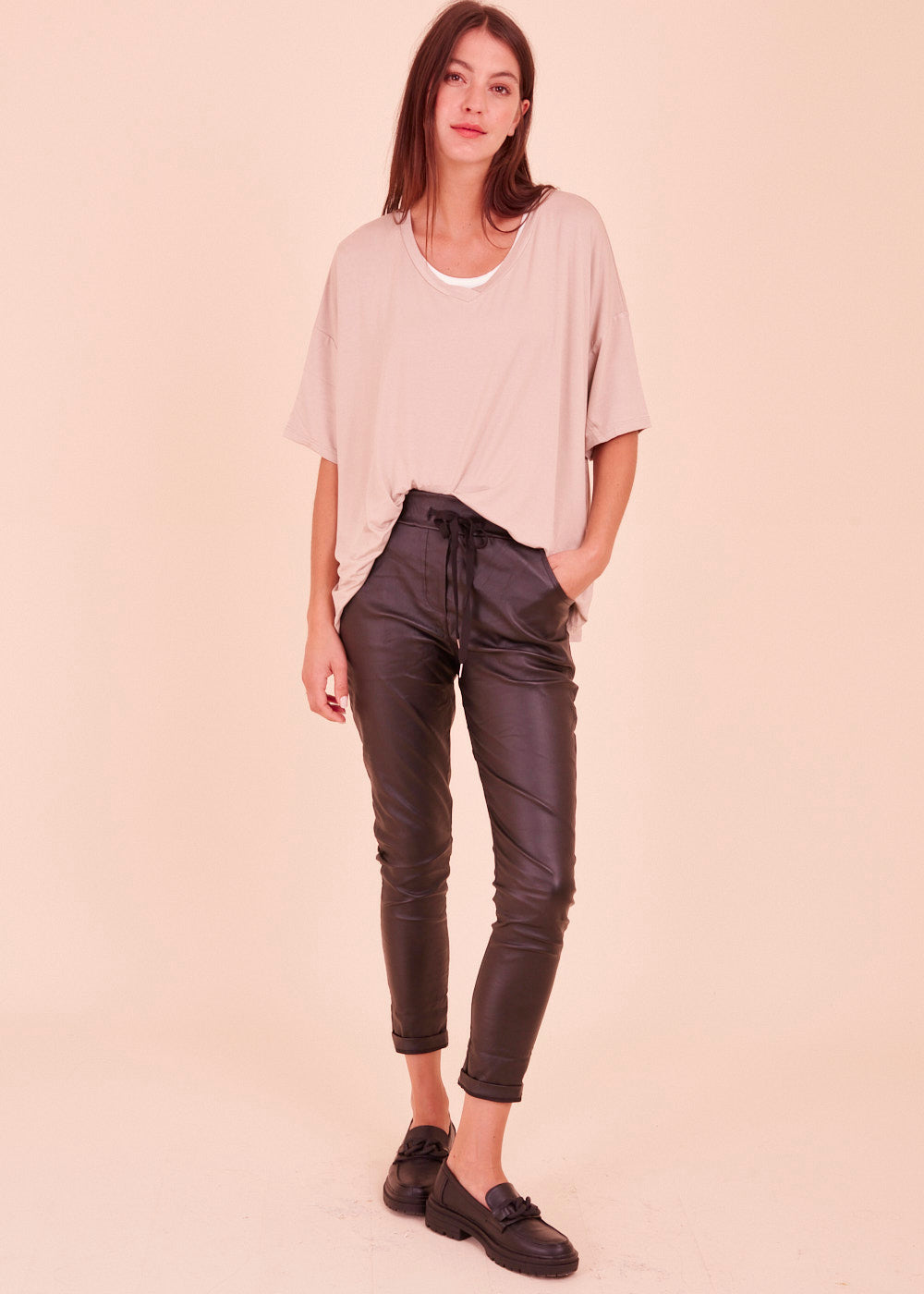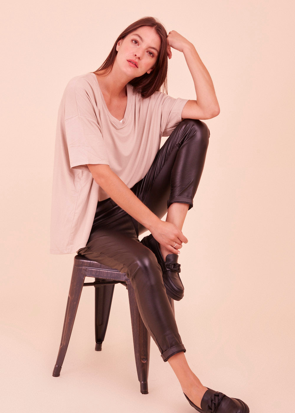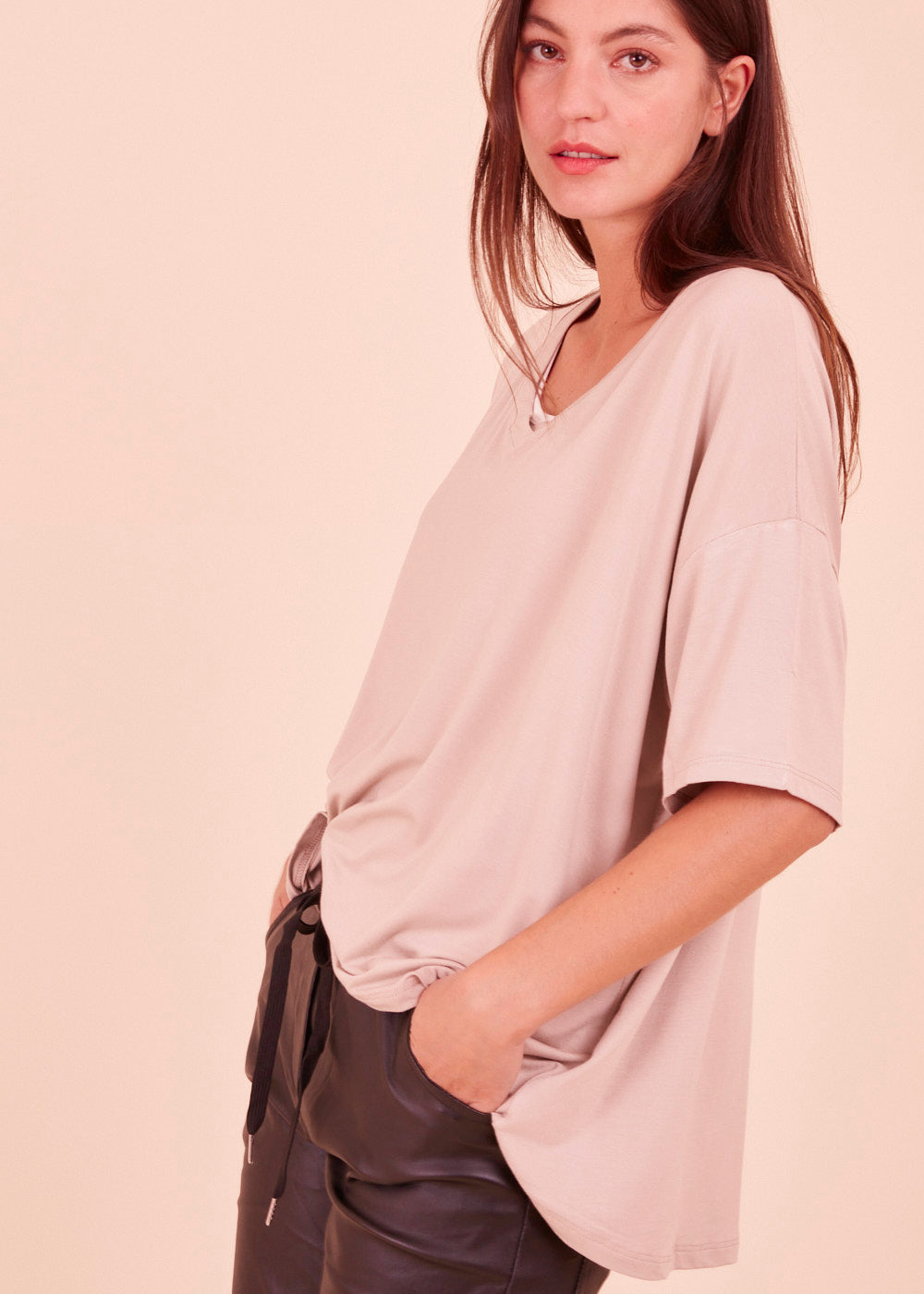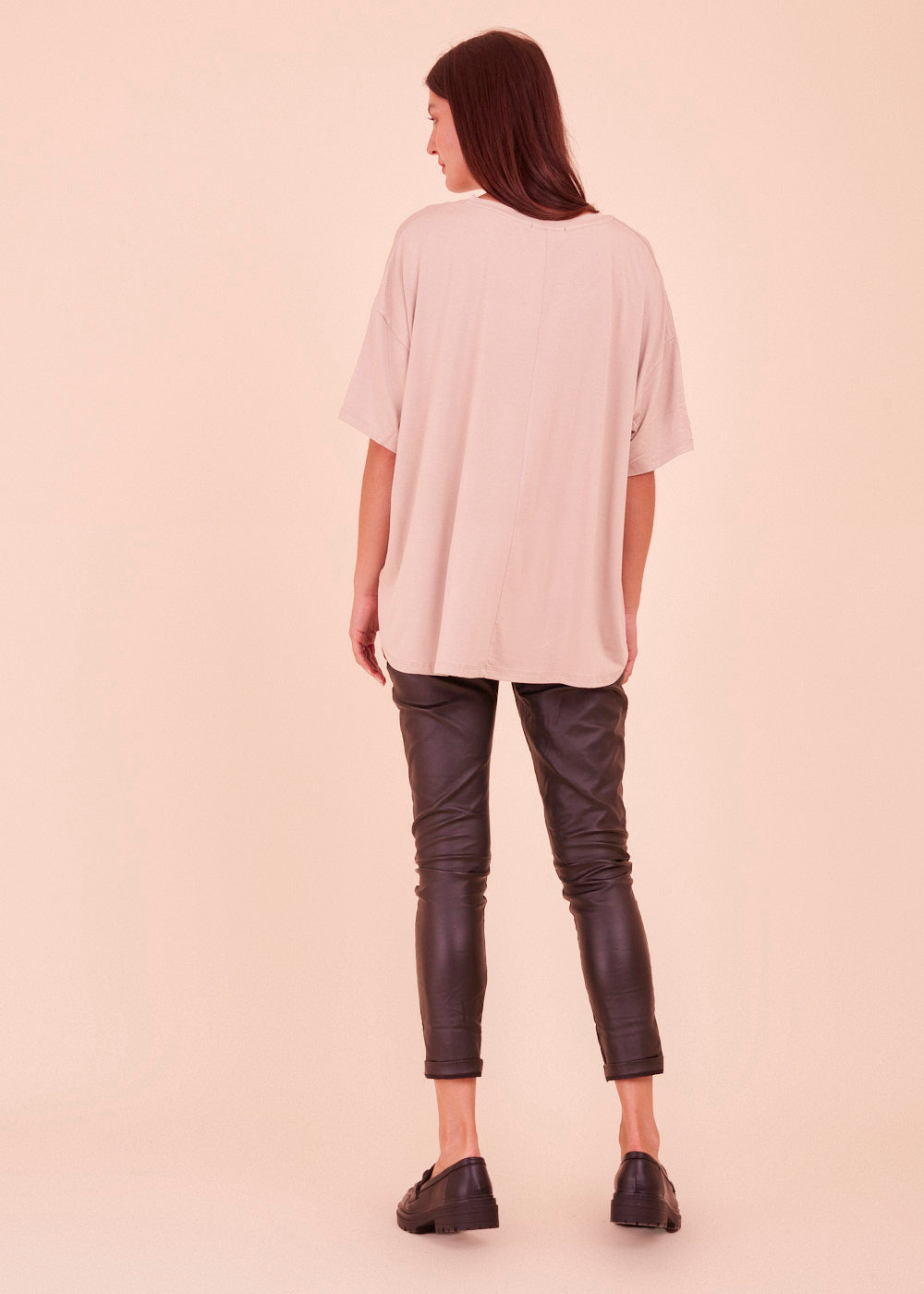 Dieses lässige und dennoch elegante Shirt ist ein absolutes Must-Have für jede moderne Fashionista, die auf der Suche nach einem vielseitigen Kleidungsstück ist, das sich mühelos in verschiedene Outfits integrieren lässt. Unser Oversize Shirt in Beige besticht durch seinen entspannten und dennoch raffinierten Stil. Die großzügige Passform sorgt für eine lässige Ausstrahlung, während der Ausschnitt dem Shirt eine subtile Eleganz verleiht. Die schlichte Gestaltung und die neutrale Farbe bieten dir eine perfekte Leinwand, um mit Accessoires und Schmuck deinen eigenen individuellen Look zu kreieren.