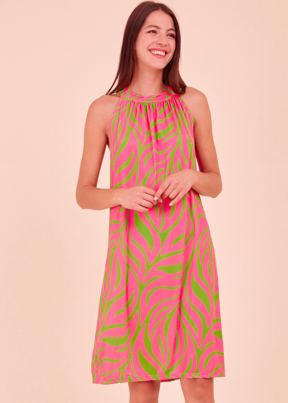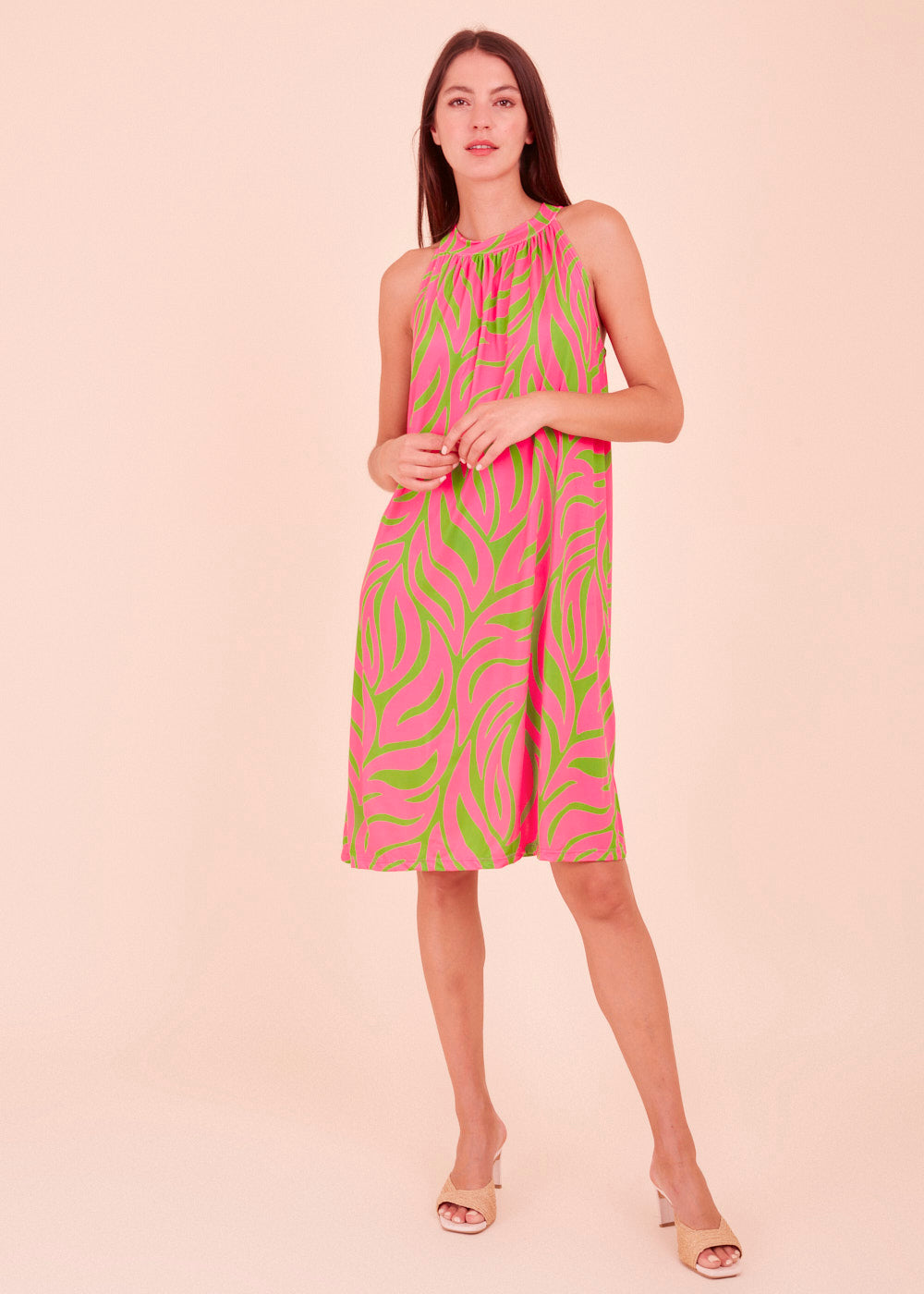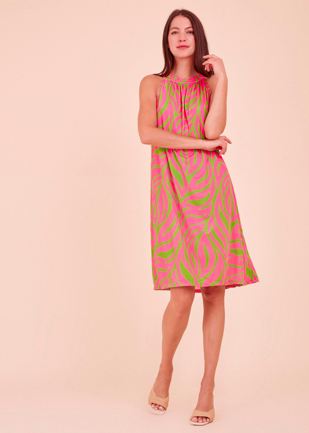 Dieses Kleid erstrahlt in frischen Print. Das aufregende Muster in Pink verleiht diesem Kleid eine fesselnde und gleichzeitig verspielte Note. Es ist der ideale Begleiter für schöne Sommertage, Partys oder einen unvergesslichen Abend mit Freunden.