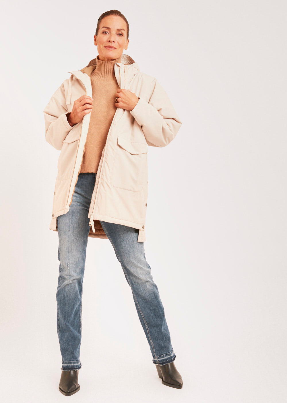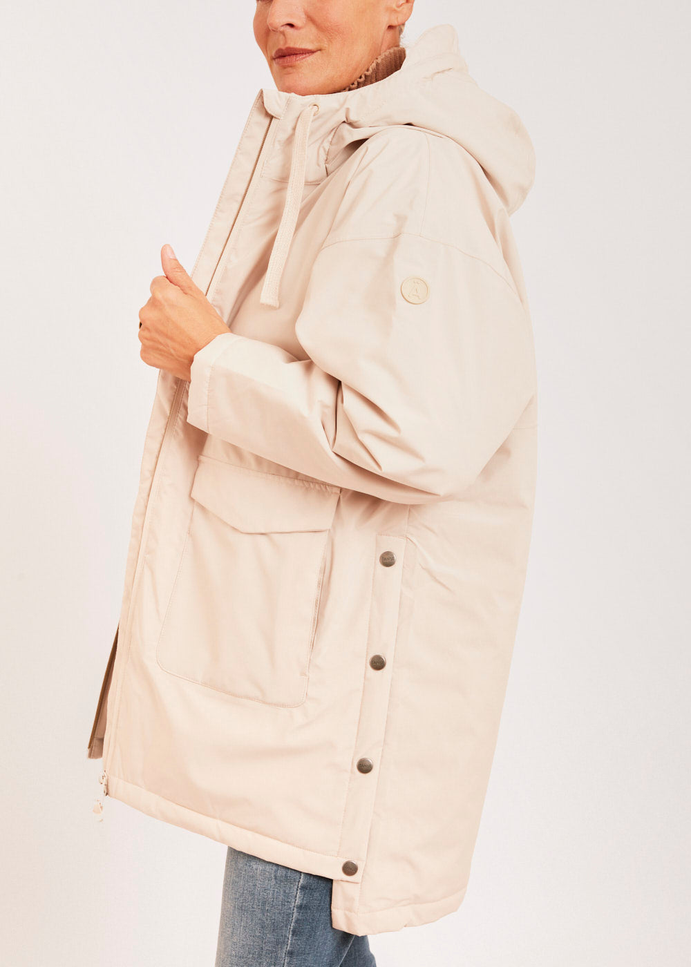 Suchst du nach einer hochwertigen Outdoorjacke in einem zeitlosen Beige? Unsere Jacke mit seitlichen Knöpfen ist genau das Richtige für Dich! Mit ihrem stilvollen Design und ihrer funktionalen Ausstattung ist sie der perfekte Begleiter.