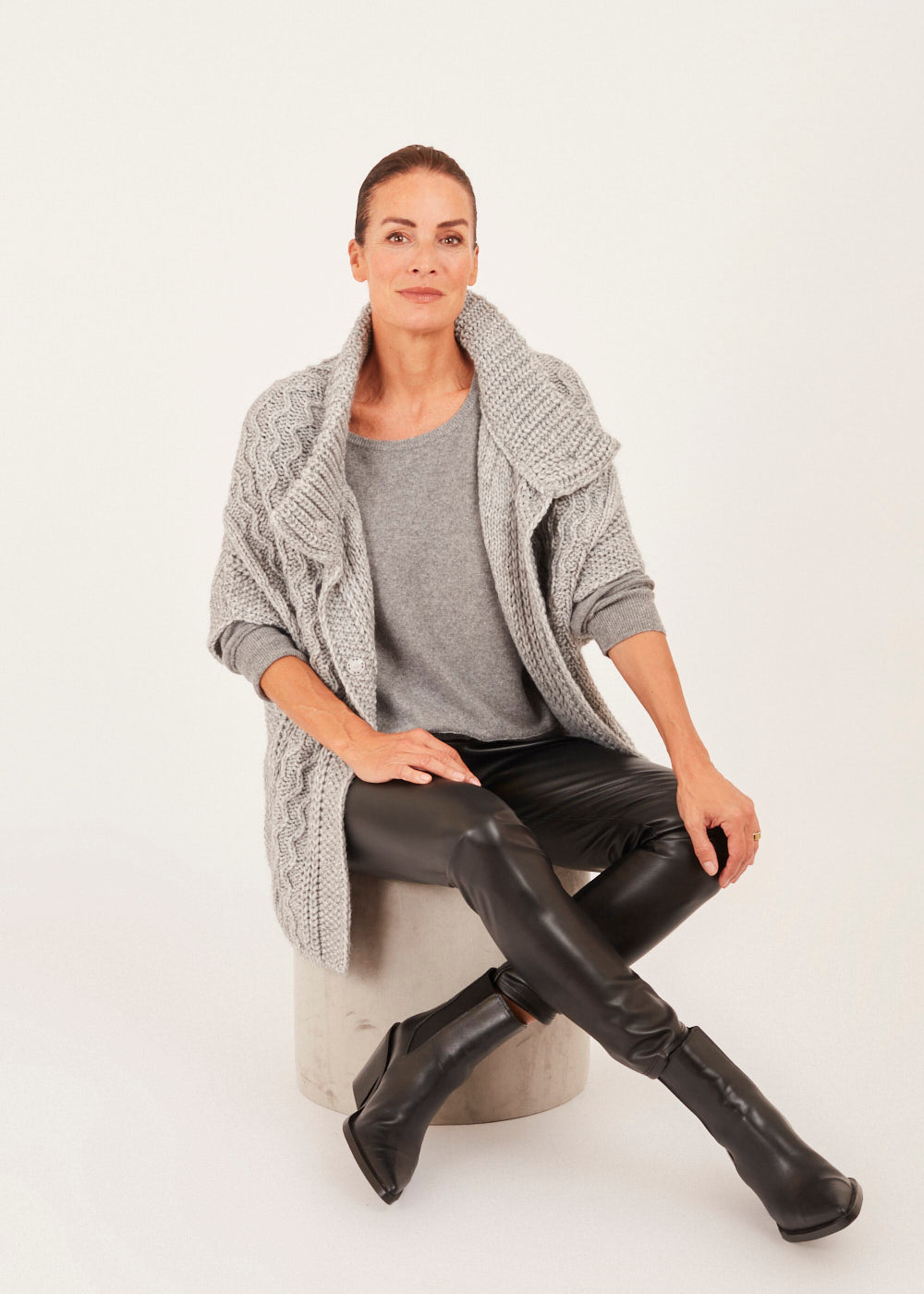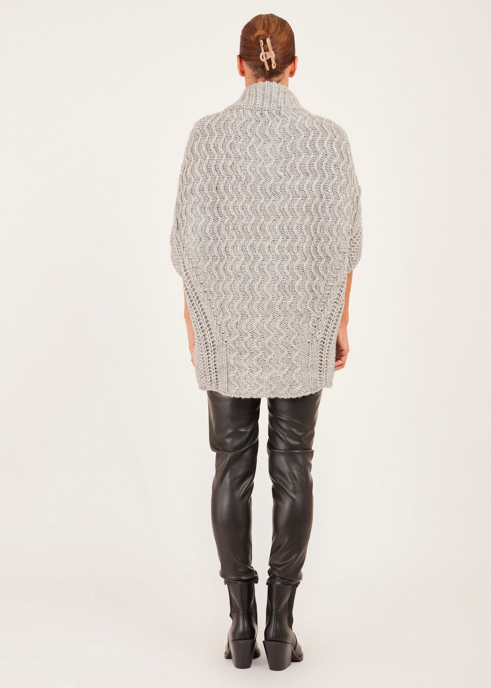 Unser geliebtes Strickcape mit kurzen Armen ist der perfekte Begleiter zum drüber werfen. Er ist mit Knöpfen verschließbar und lässt sich daher auch perfekt geschlossen tragen. Durch sein Unifarbenes Design lässt er sich wunderbar kombinieren und macht dabei noch eine richtig gute Figur. Mit diesem extravaganten Strickstück sind wir für alle Fashion-Fälle gewappnet.