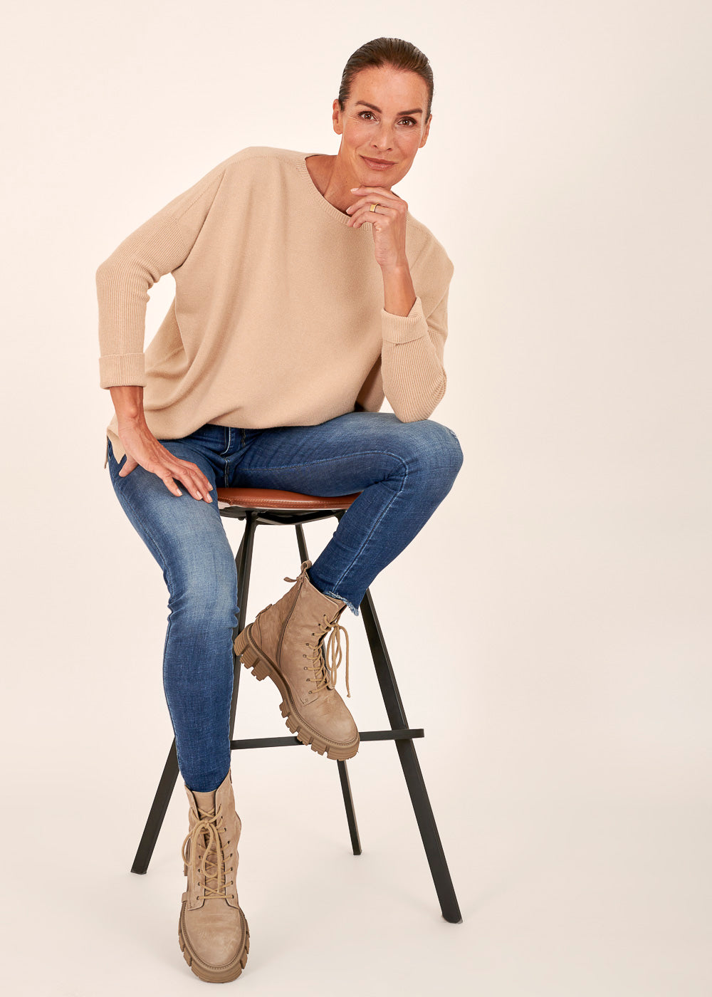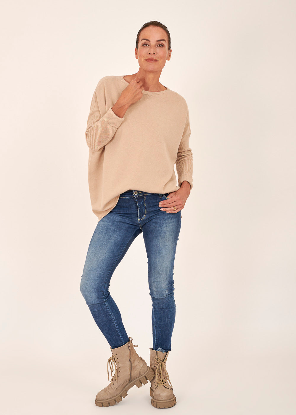 Das Model trägt bei einer Körpergröße von 179 cm die Konfektionsgröße Onesize.