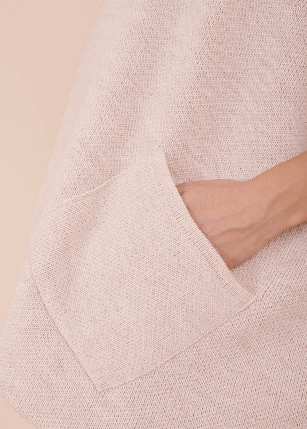 Wundervoller Mantella aus Strick mit seitlichen Eingriffstaschen. Ein wunderbarer Kombinationsartikel. Die kurze Strickjacke ist mit einer offenen Front gestaltet, die einen mühelosen Look ermöglicht. Sie können sie einfach überwerfen, um Ihren Stil zu vervollständigen, sei es für einen lässigen Spaziergang im Park oder einen Abend mit Freunden.
