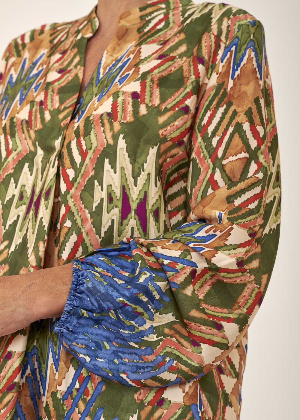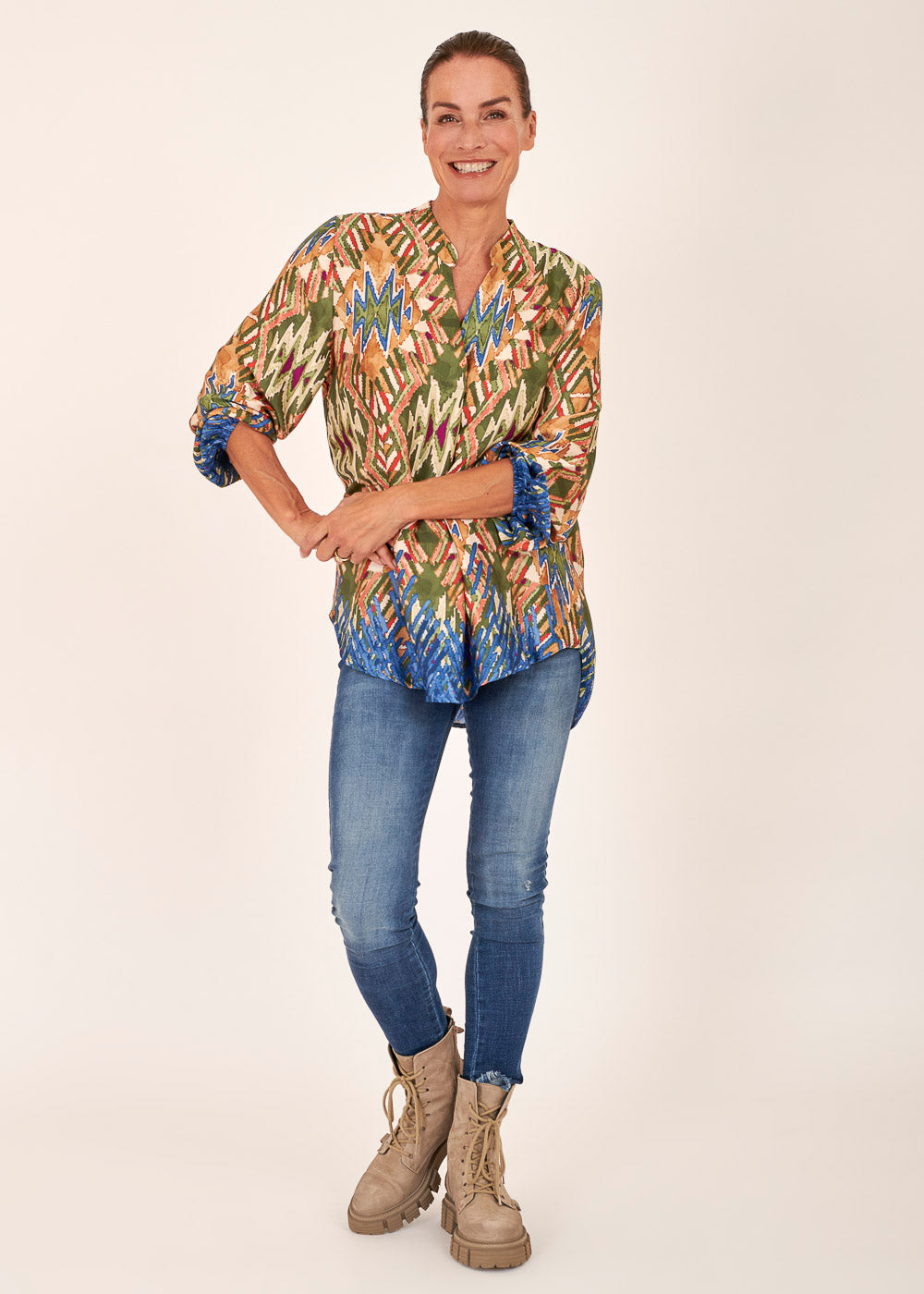 Dieses Kleidungsstück vereint stilvolles Design mit dem gemütlichen Komfort einer Bluse und ist perfekt geeignet, um dich sanft durch den Übergang von warmen Sommertagen zu den kühleren Herbstnächten zu begleiten. Mit einer schicken Jacke oder einem Cardigan darüber verwandelst du die Bluse im Handumdrehen in ein wärmendes Outfit für kühlere Herbstabende. Die Möglichkeiten sind endlos!