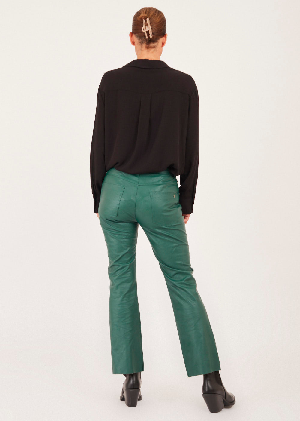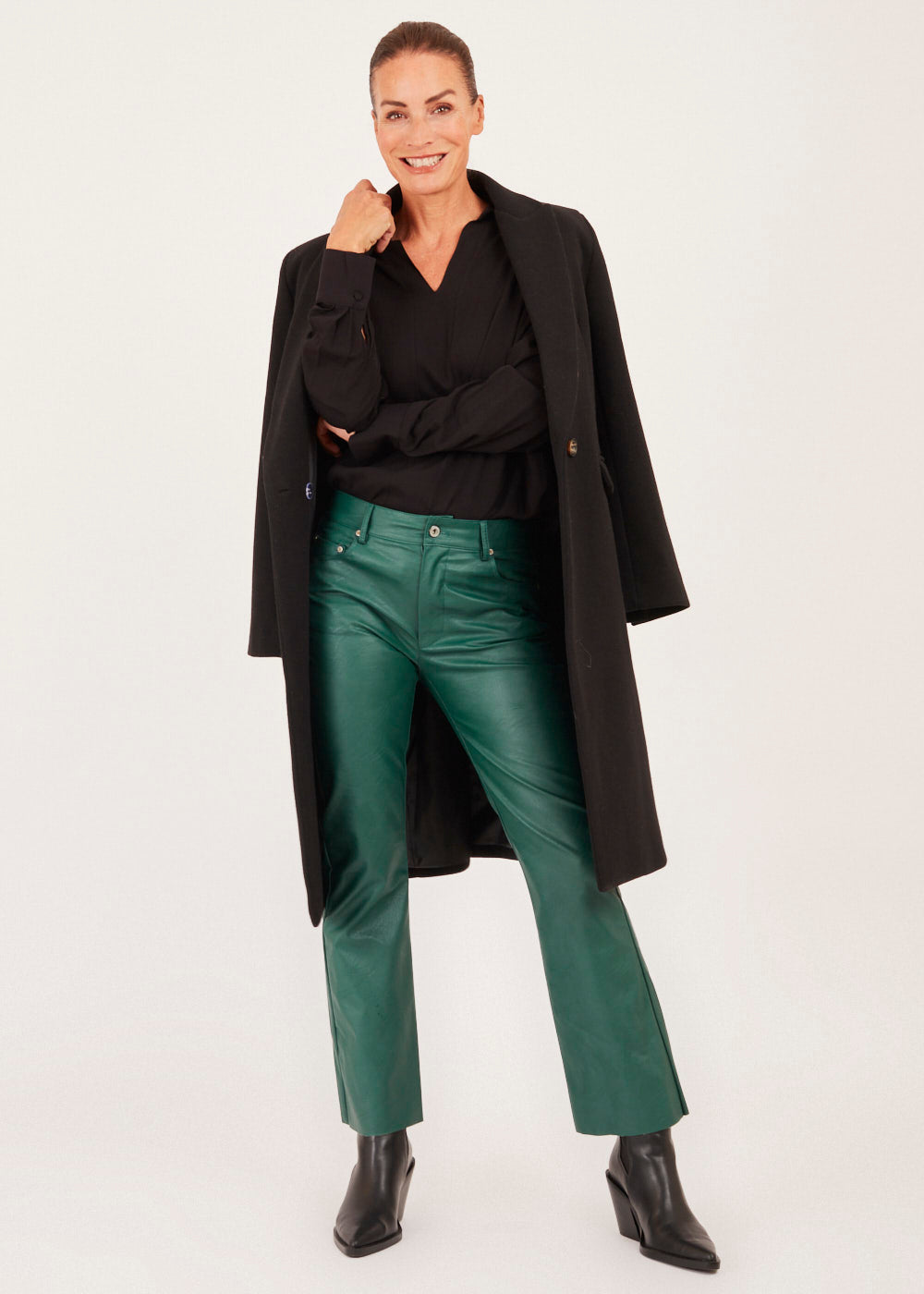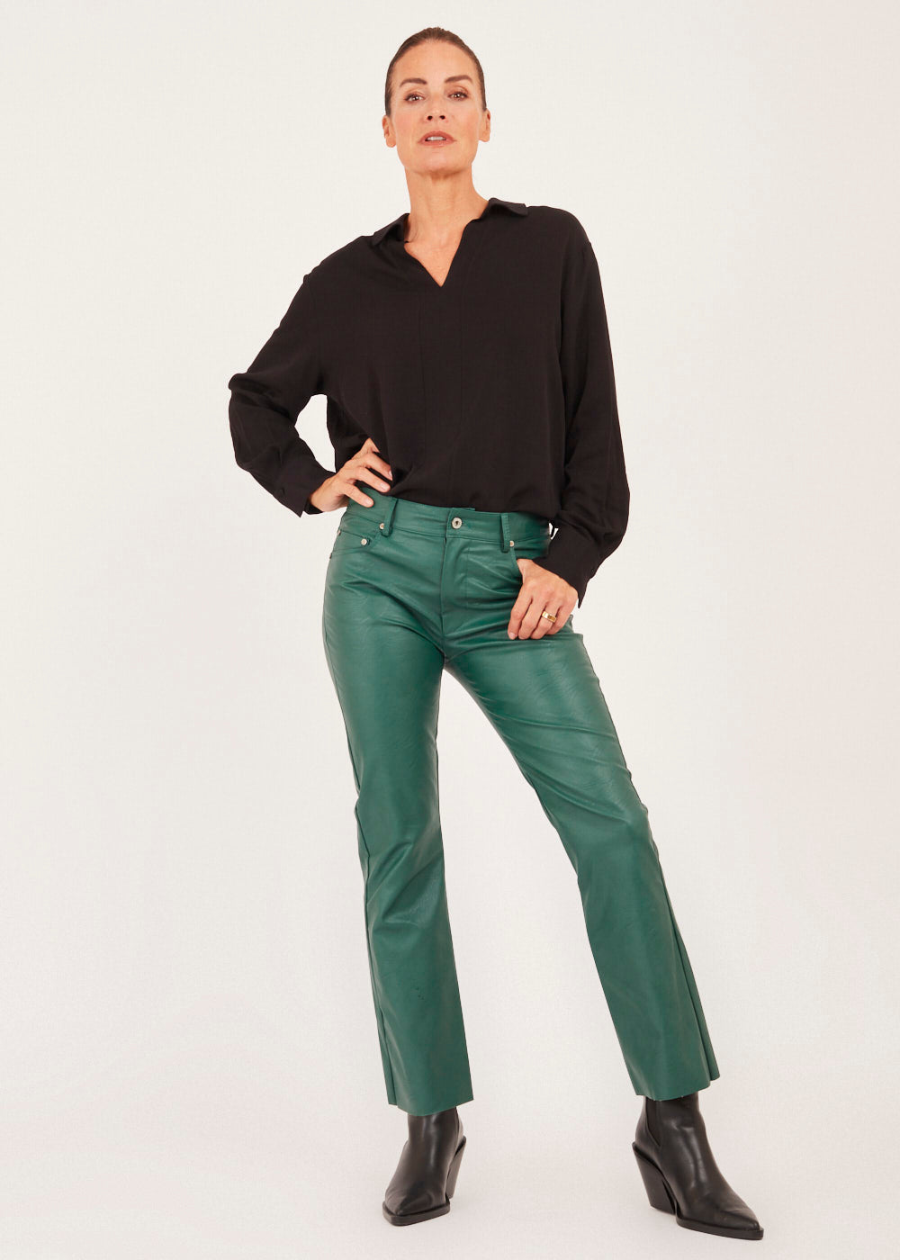 Für unserer Fashionistas! Diese Please Eco leather Kick-Flare zaubert dir durch seinen Bootcut Schnitt eine traumhafte Silhouette. Dabei überzeugt sie durch ihr besonderes Material und ist dadurch wunderbar zu kombinieren. Mit Metallherz Detail am Gesäß.