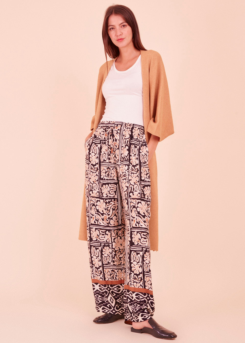Lust auf einen neuen Look? Dann ist diese Printhose dein neues Lieblingsstück. Das leicht fließende Viskosematerial trägt sich  wunderbar auf deiner Haut. Der Gummizug schmiegt sich dabei angenehm an deinen Körper und engt dich nicht ein. Wir haben auch die  passenden Bluse in unserem Shop.