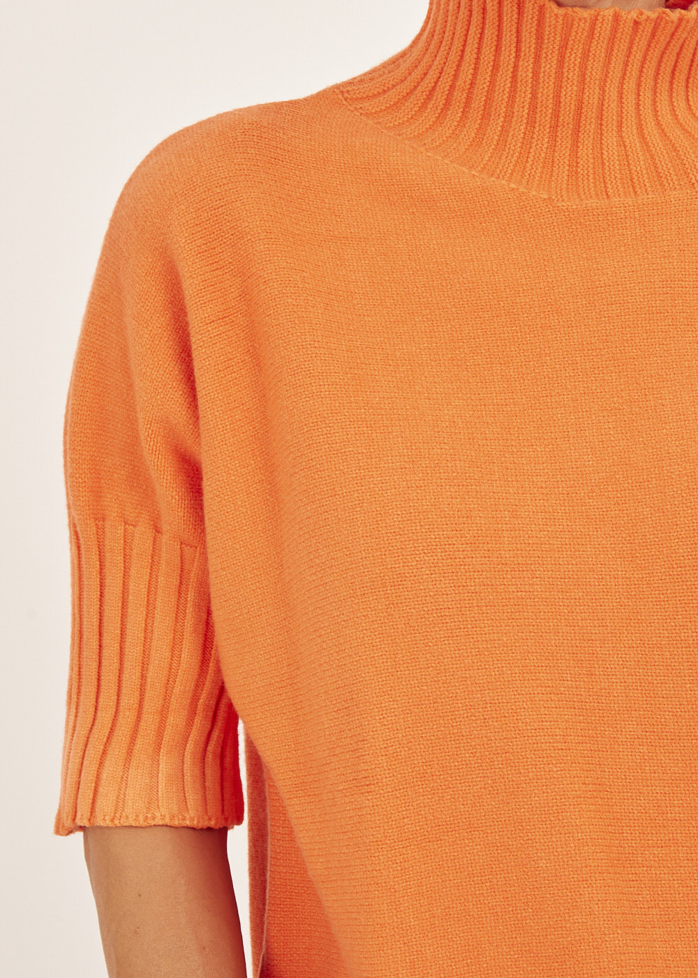 Unser Strickliebling! Kastig geschnittener Strickpullover mit Stehkragen aus unserem Viskose-Kuschelgarn. Mit Rippenbündchen am Kragen und am Ärmelnabschluss. Mit 3/4-Arm.
