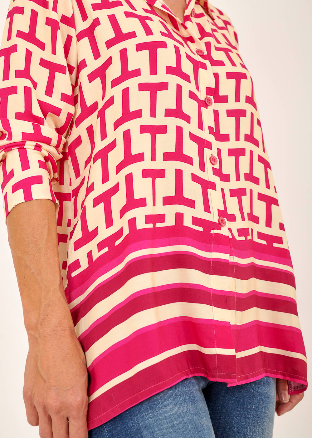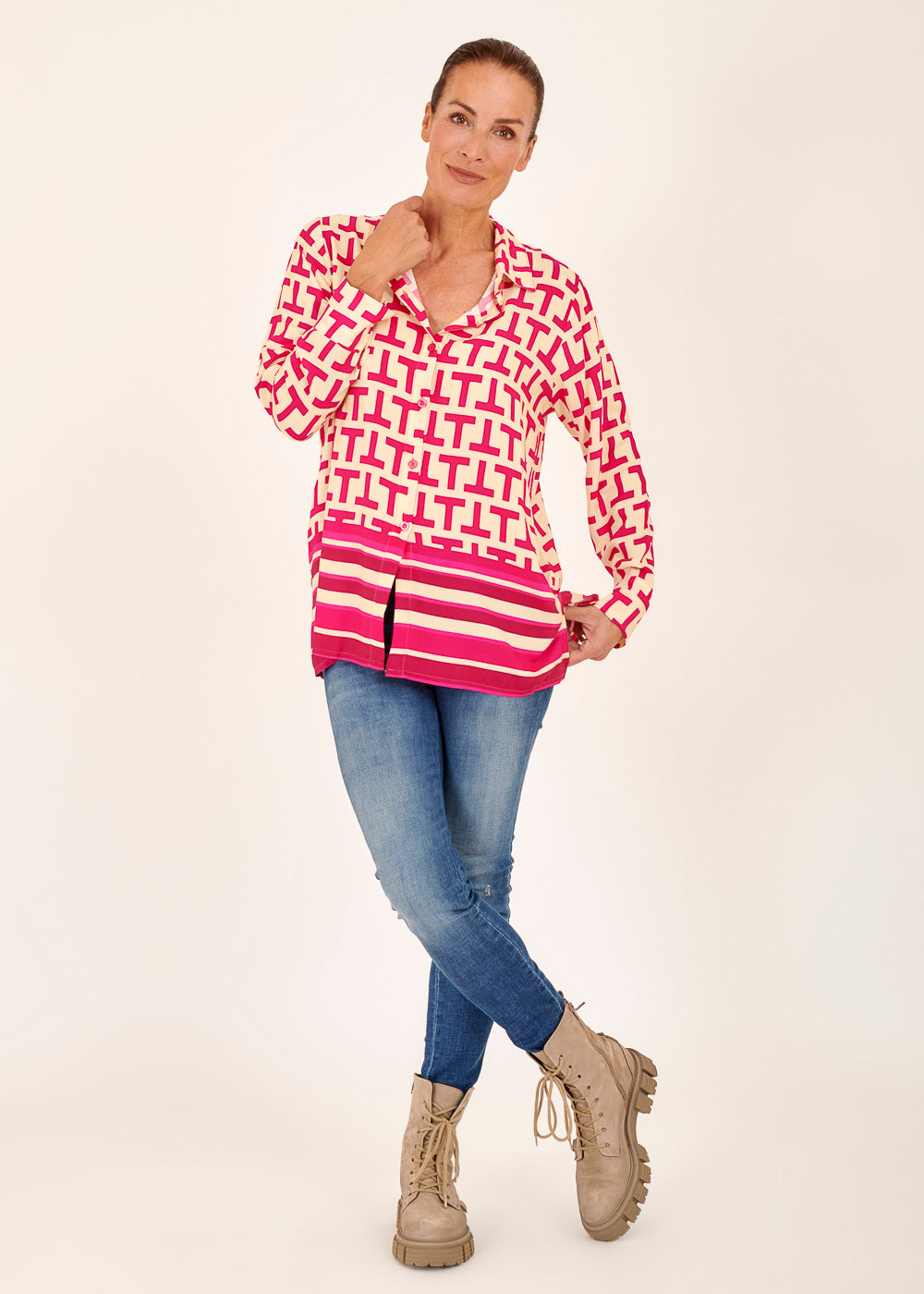 Unsere neue Fashionbluse für unsere Fashionista!  Durch diese fließende leichte Viskosebluse in einem zauberhaften Farben, zauberst du dir ein Strahlen ins Gesicht. Diese gemusterte Bluse im Stehkragen Stil ist lässig geschnitten. Die frischen Farben verleihen deinem Look die perfekte Frische. Einfach besonders!