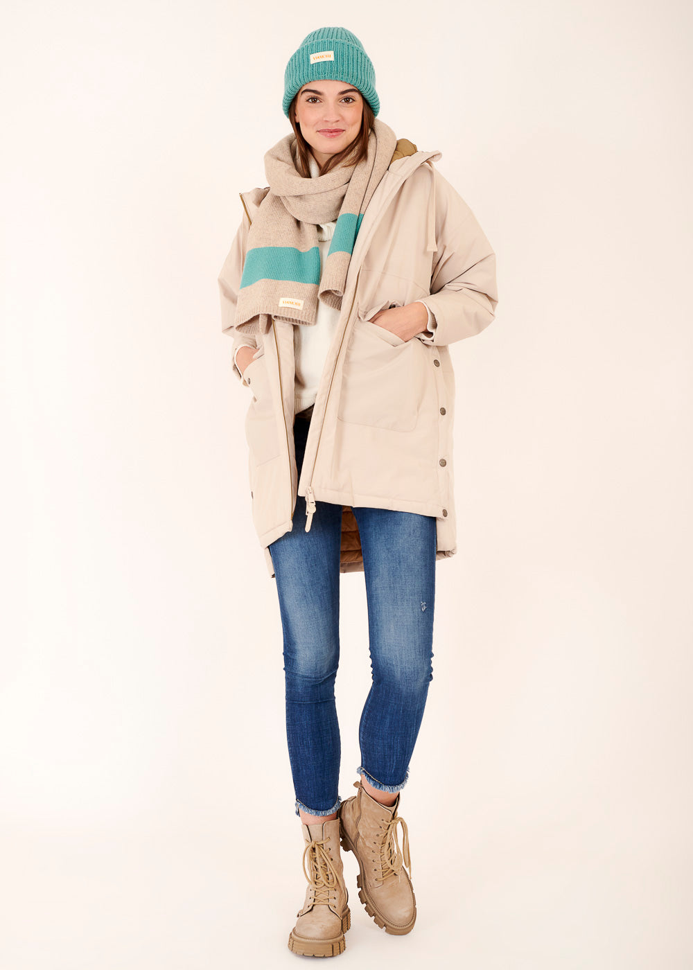 Der Schalkragen sorgt nicht nur für eine ansprechende Optik, sondern bietet auch zusätzlichen Schutz vor Kälte. So kannst du ihn nach Belieben umschlagen oder hochziehen, je nach Ihrem individuellen Stil und Wärmebedarf.