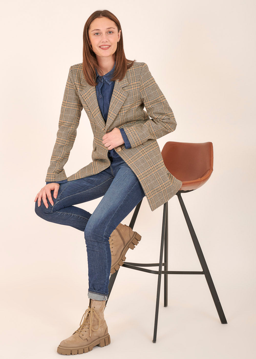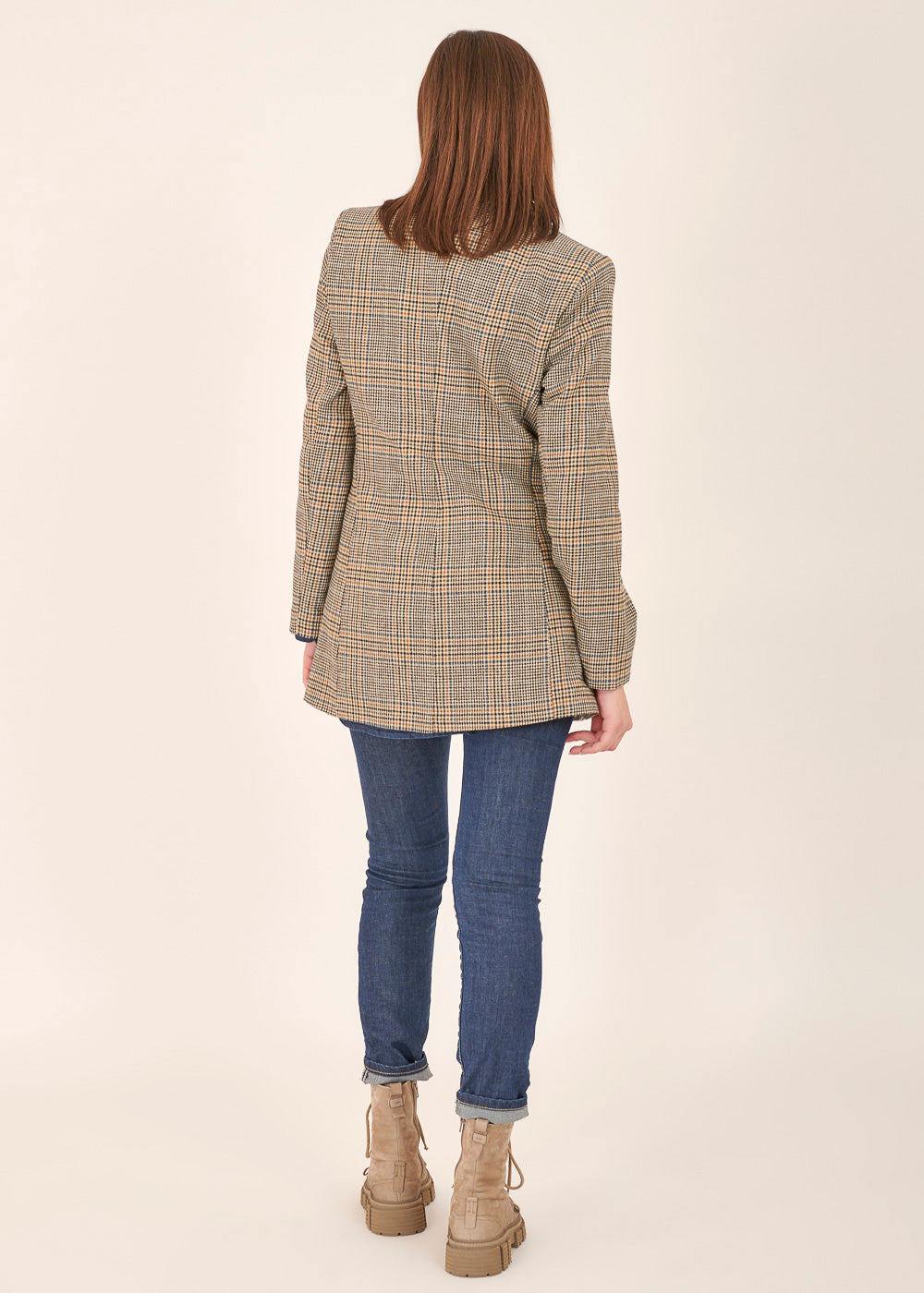 Unser Longblazer zeichnet sich durch eine Vielzahl von besonderen Merkmalen aus, die ihn von anderen Blazern abheben. Der taillierte Schnitt sorgt für eine schmeichelhafte Passform und betont deine Silhouette. Die Knopfleiste und die seitlichen angedeuteten Taschen verleihen dem Blazer eine praktische Note, ohne dabei den Stil zu beeinträchtigen. Die hochwertige Verarbeitung gewährleistet Langlebigkeit und Tragekomfort. Der Longblazer im Glencheck Design ist äußerst vielseitig. Trage ihn über einem schlichten Hemd oder einer Bluse für einen eleganten Bürolook, oder kombinieren ihn mit Jeans und einem T-Shirt für einen entspannten, aber dennoch stilvollen Freizeitlook. Er eignet sich auch hervorragend als Teil eines schickeren Ensembles für formellere Anlässe.