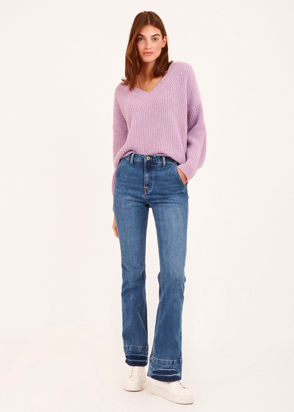 Einfach nur modisch!  Diese Fashionjeans zaubert dir durch seinen Bootcut Schnitt eine traumhafte Silhouette. Dabei überzeugt sie durch ihr angenehmes besonderes Material und ist dadurch wunderbar zu kombinieren. Für unserer Fashionistas!