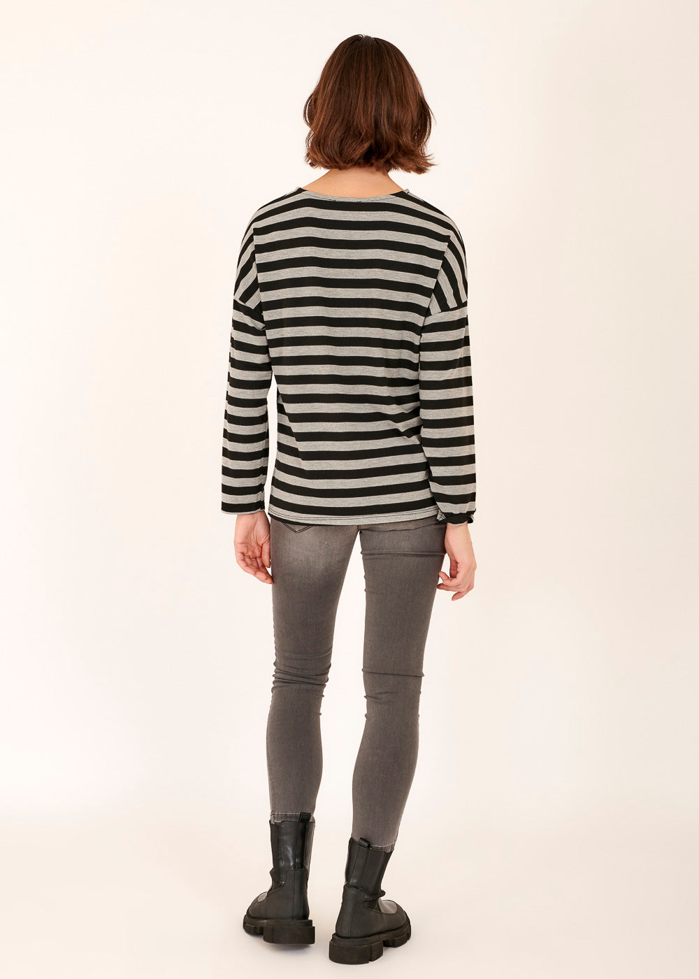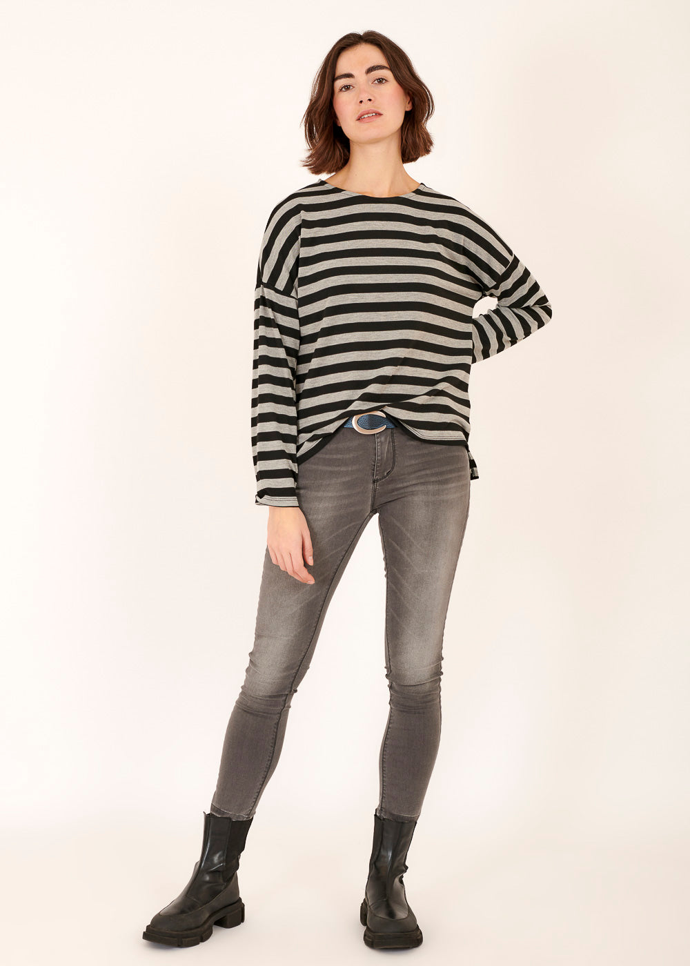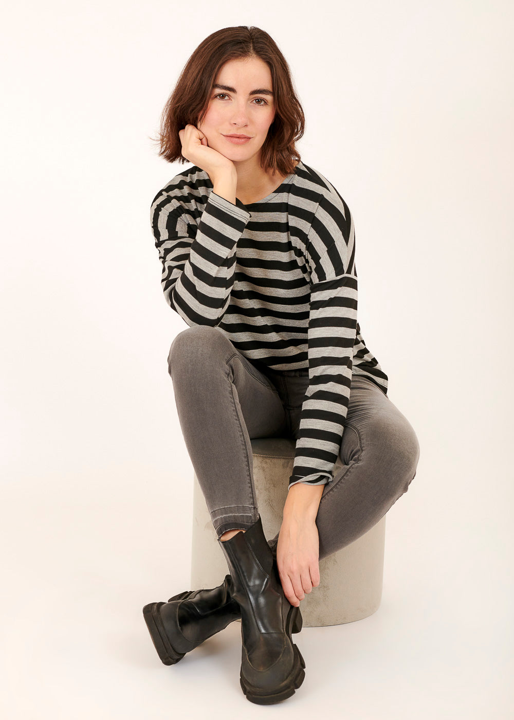 Unser geliebtes Ringelshirt ist einfach perfekt zum kombinieren. Unser Ringelshirt besteht aus hochwertigen Materialien, die nicht nur angenehm auf der Haut liegen, sondern auch langlebig sind. Die sorgfältige Verarbeitung garantiert, dass dieses Shirt seine Form und Farben auch nach wiederholtem Tragen behält. Dieses Ringelshirt passt zu nahezu jedem Outfit und Anlass. Tragen es zu Jeans für einen entspannten Alltagslook.