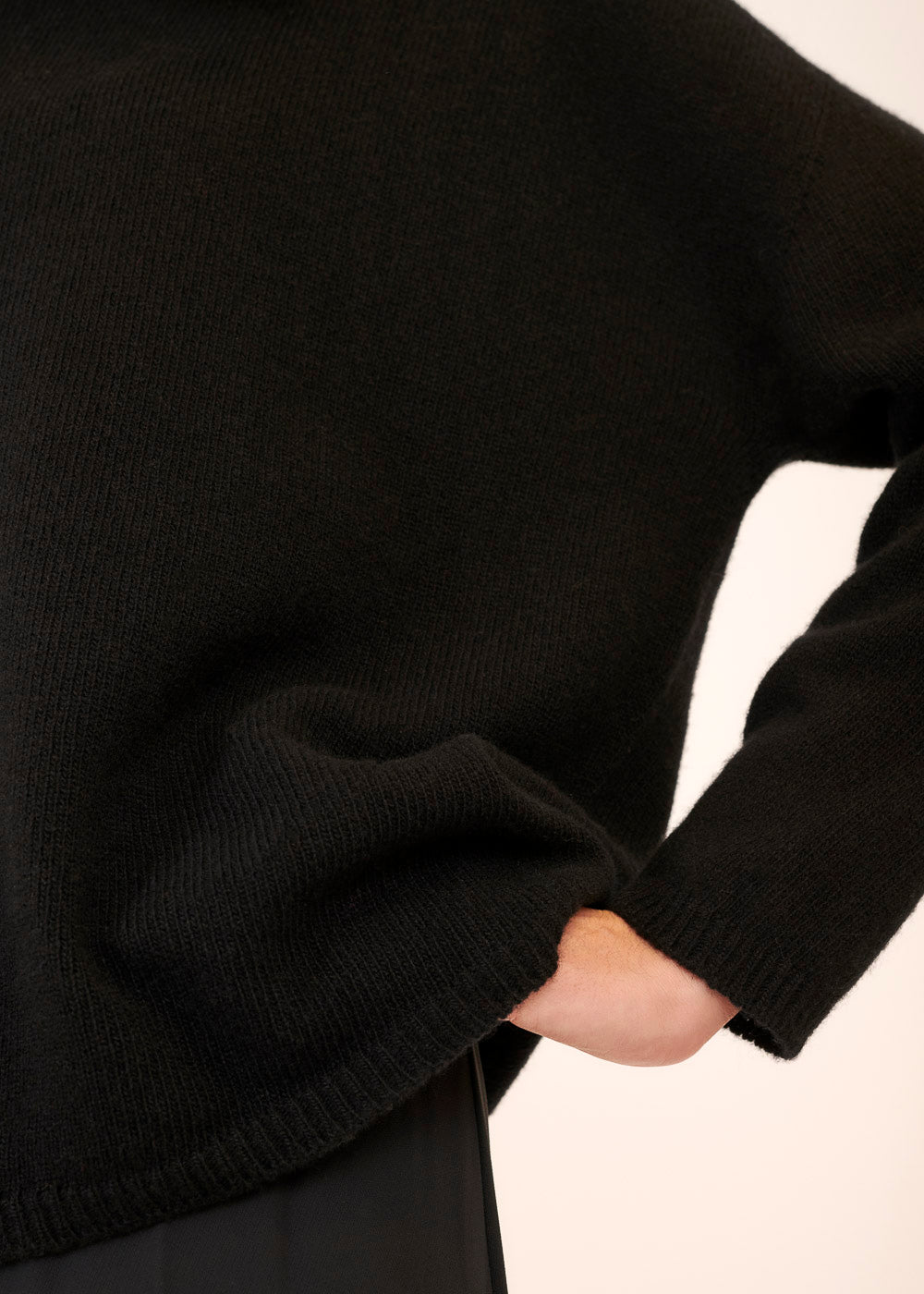 Ganz gleich, ob du ihn im Büro, bei gesellschaftlichen Anlässen oder in deiner Freizeit tragen möchtest - dieser edle schwarze Rollkragenpullover ist ein zeitloses Kleidungsstück, das in keiner Garderobe fehlen sollte. Mit seiner hochwertigen Verarbeitung und zeitlosen Erscheinung ist er ein Investitionsteil, das dir lange Freude bereiten wird.