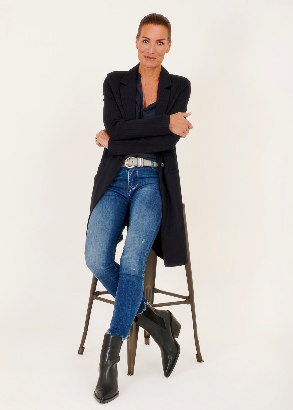 Kombiniere den Longblazer mit der dazu passenden Hose, um ein vollständiges Ensemble zu schaffen, das nicht nur Ihre Silhouette schmeichelt. Der italienische Schnitt und die hochwertige Verarbeitung machen dieses Duo zu einem zeitlosen Highlight in Ihrer Garderobe.