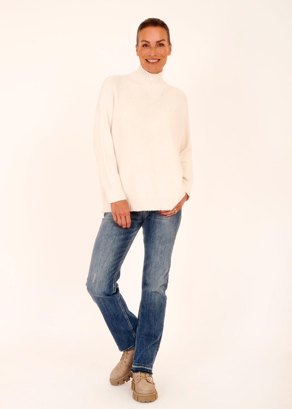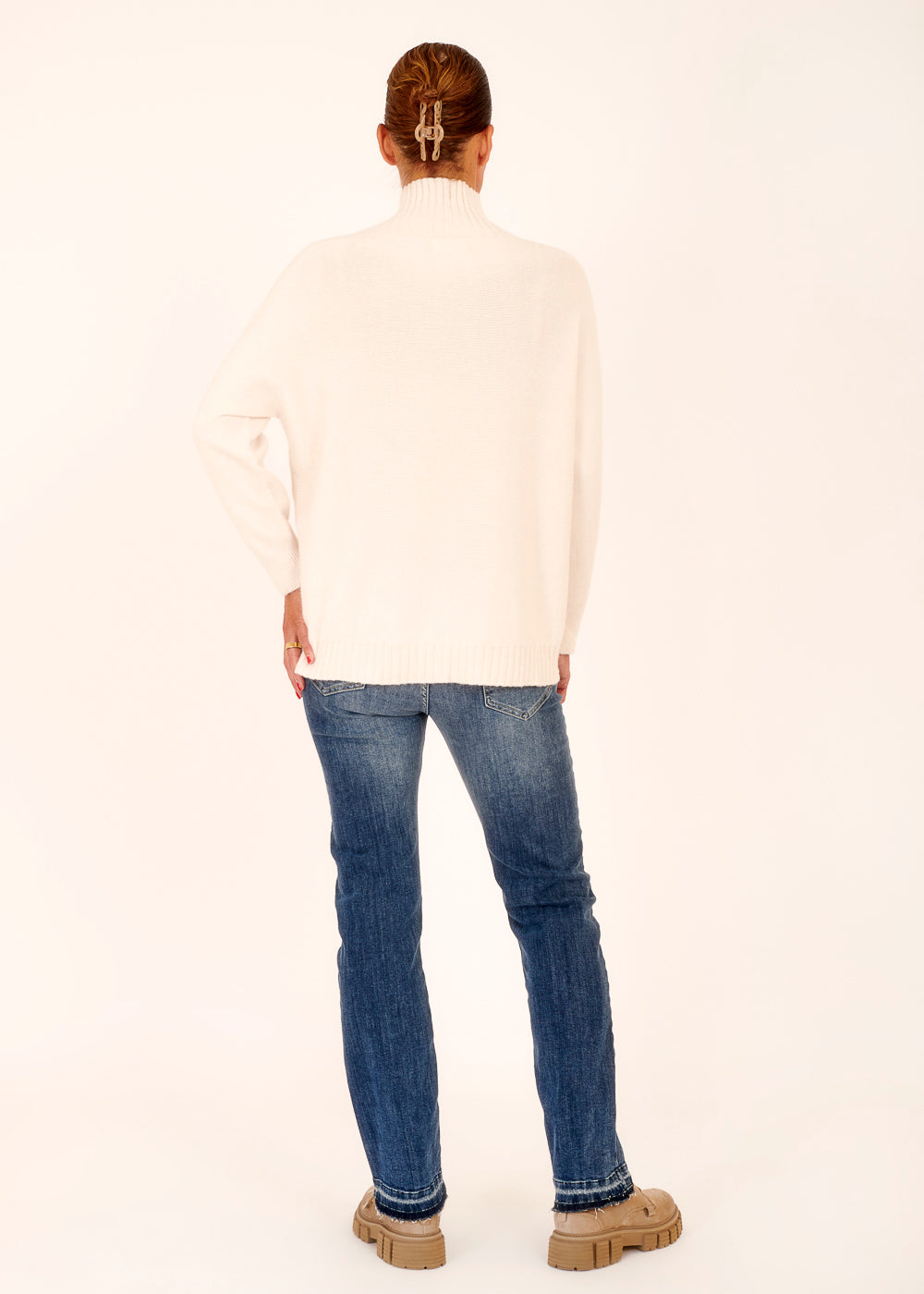 Unser kuschelig, lässige Pullover mit Turtleneck bietet das Beste aus beiden Welten - unschlagbare Gemütlichkeit und unverwechselbaren Stil. Das angenehme Material ist weich auf deiner Haut und der edle Panna Ton lässt sich wunderbar stylen.  Egal, ob du im Büro, bei einem Treffen mit Freunden oder an einem gemütlichen Abend zu Hause tragen - dieser Pullover ist immer die richtige Wahl.