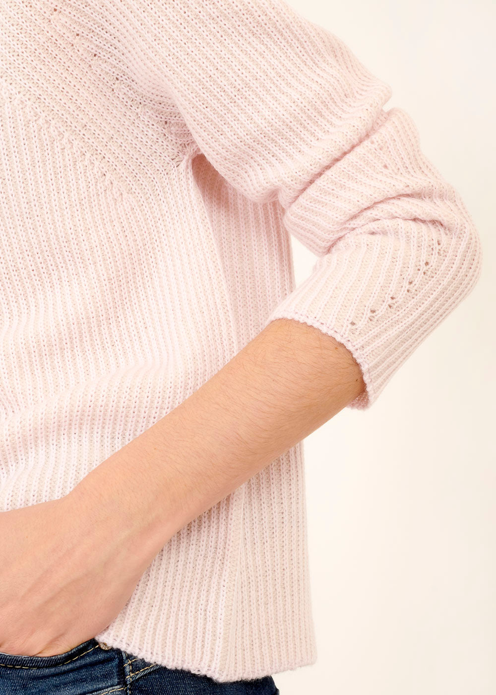 Die zarte Rosa-Farbe verleiht diesem Pullover eine feminine Ausstrahlung, während das schlichte Design ihn zu einem einfach zu kombinierenden Kleidungsstück macht. Die hochwertige Verarbeitung gewährleistet Langlebigkeit und Komfort.