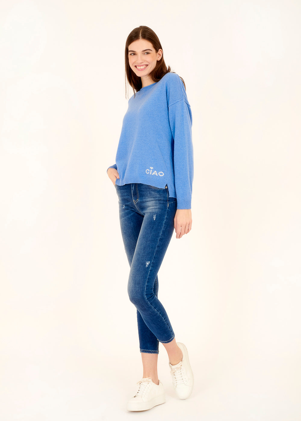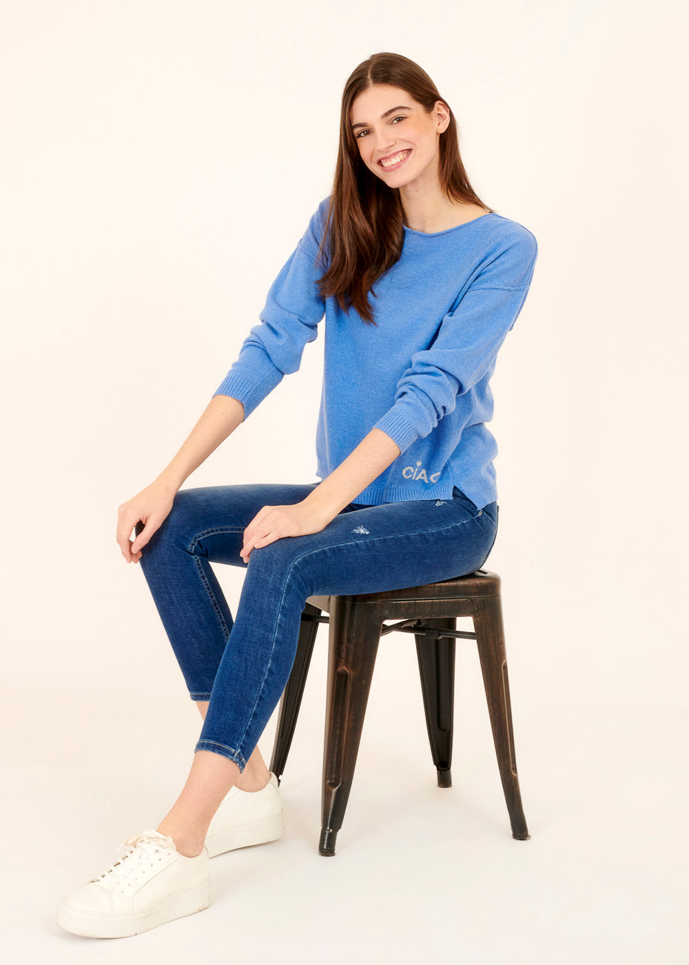 Unser geliebter Pulli, veredelt durch eine dezente "Ciao"-Stickerei  Das hochwertige Material garantiert nicht nur ein angenehmes Tragegefühl, sondern verleiht dem Pullover auch einen Hauch von Luxus.