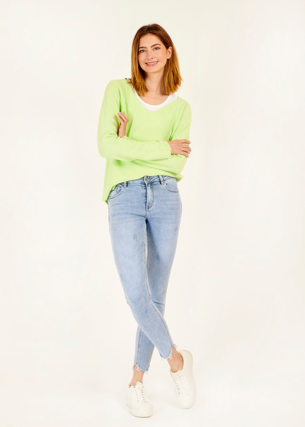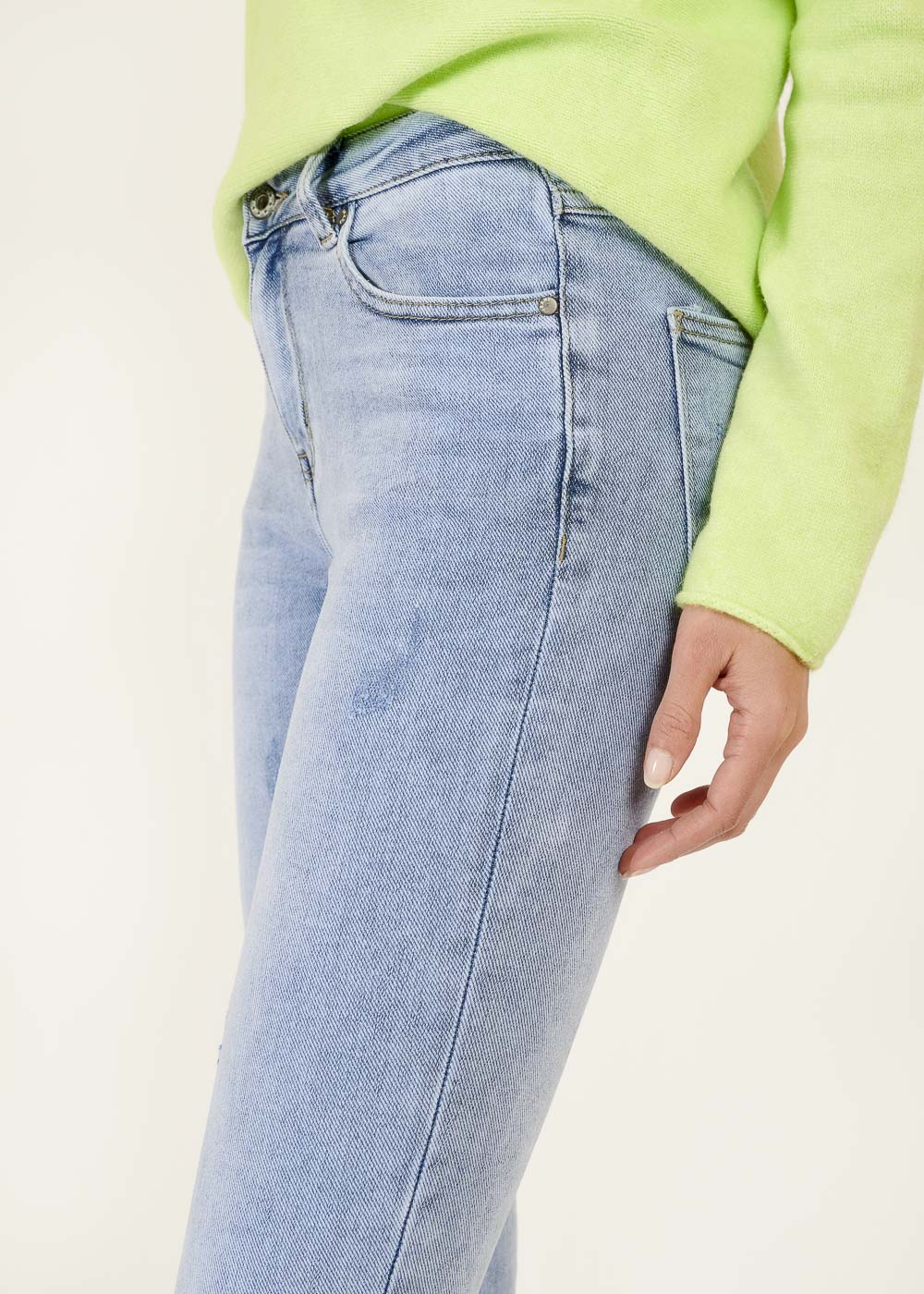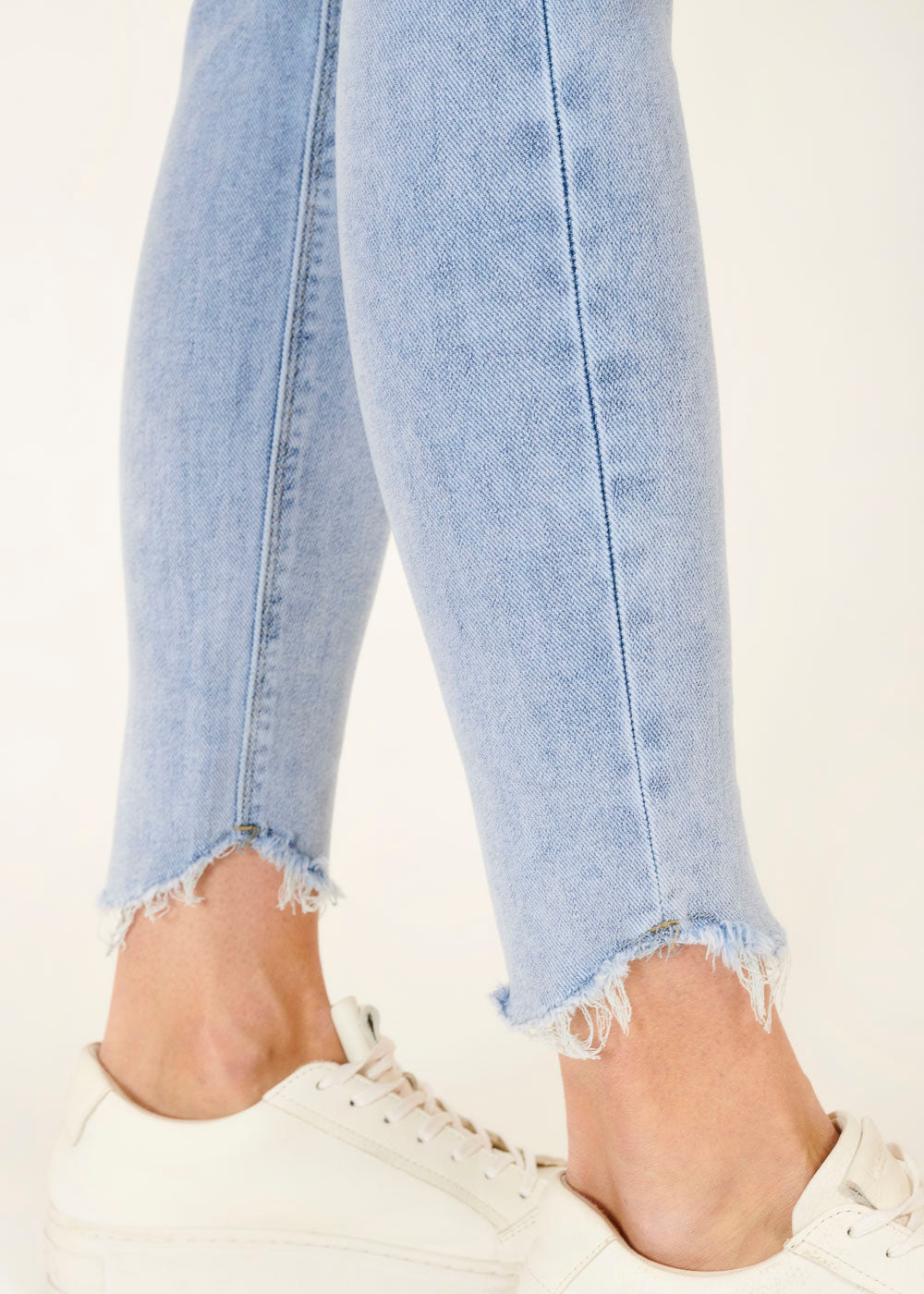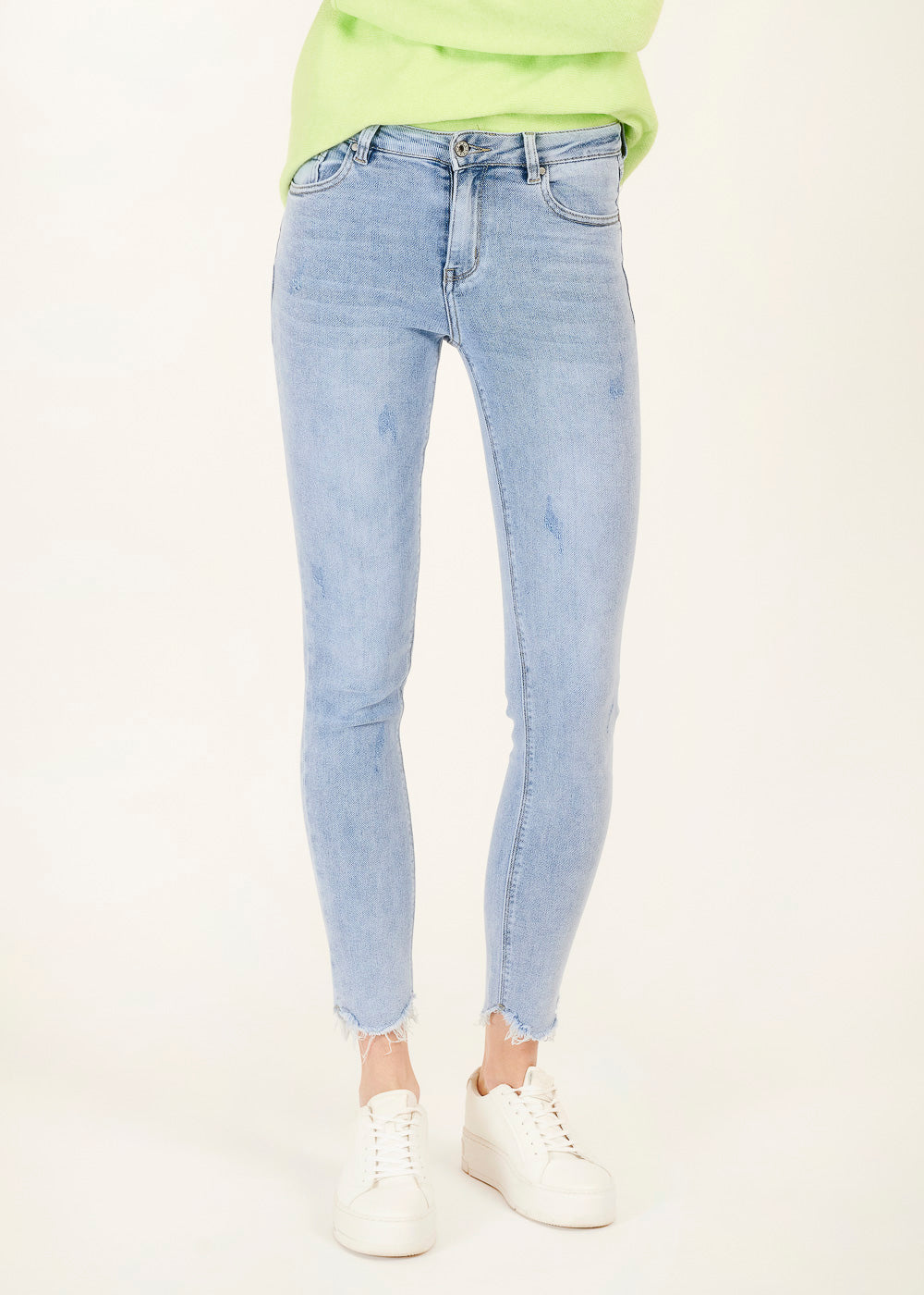 Die helle Waschung verleiht der Jeans eine frische und moderne Note, während der Fransensaum für einen angesagten Look sorgt, der sofort ins Auge fällt. Mit ihrem enganliegenden Schnitt betont diese Röhrenjeans deine Figur und sorgt für eine schmeichelhafte Silhouette.