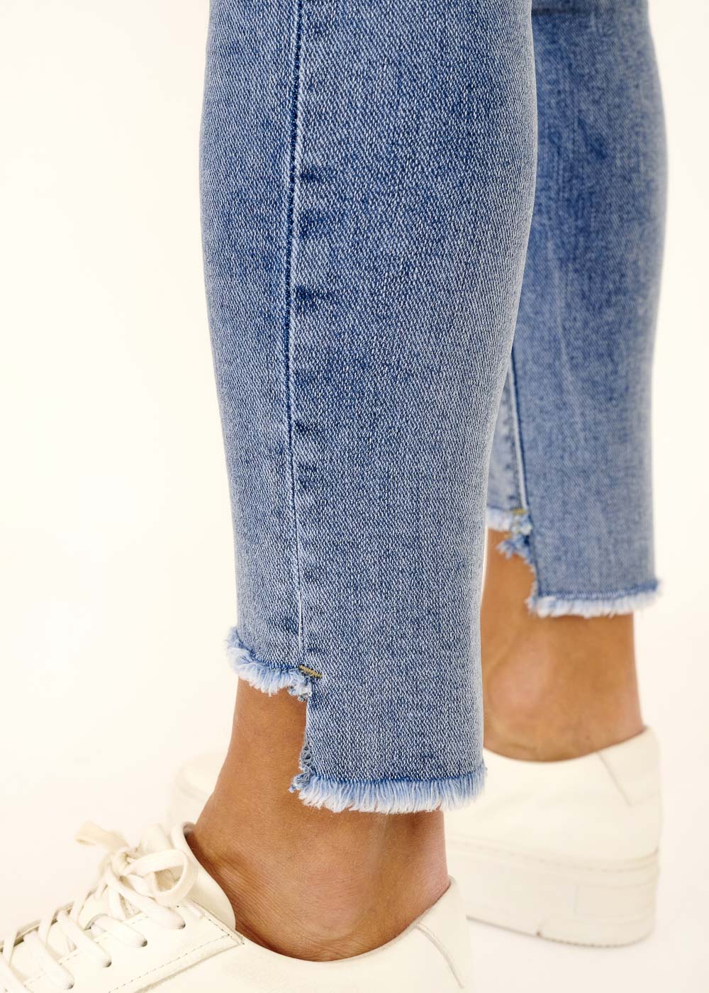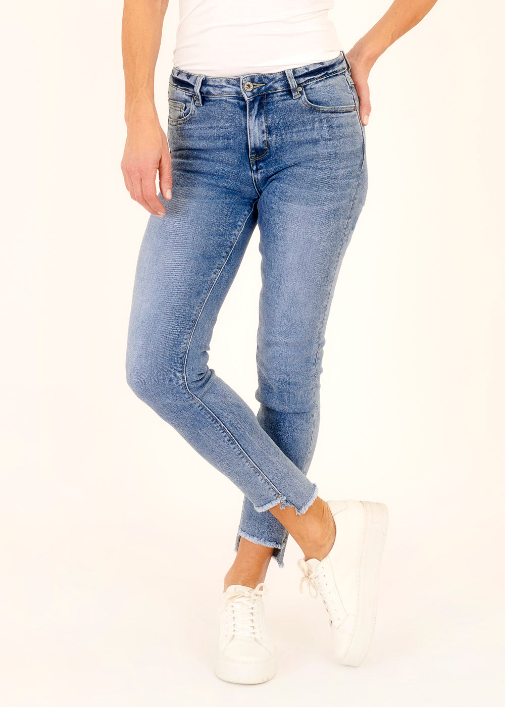 Skinny Jeans mit normaler Leibhöhe und schmal zulaufendem Bein mit ausgefransten Saum. Die Jeans schließt mit Knopf und Reißverschluss. Die Hose besitzt seitliche Eingriffstaschen und Taschen am Gesäß und überzeugt durch ihre elastische Baumwollqualität. Einfach perfekt für jeden Anlass.
