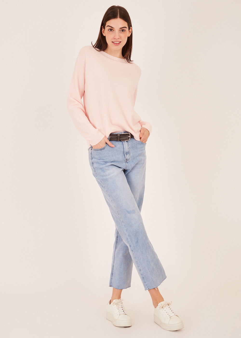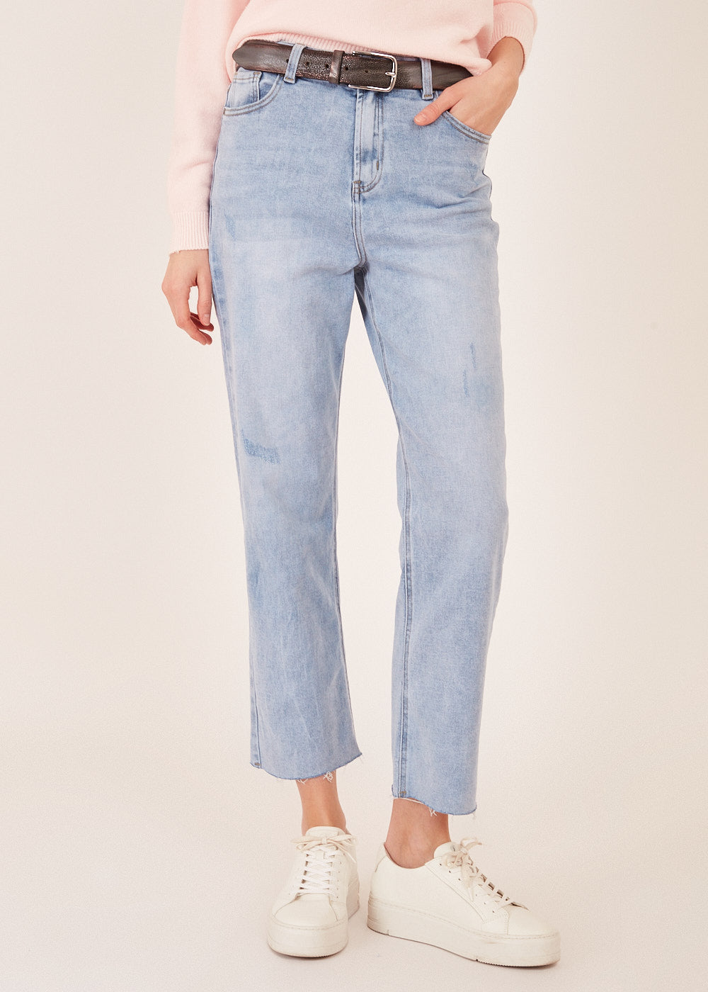 Bringe deinen Look auf ein neues Level mit unserer High Waist Jeans in einer hellen Waschung und einem angesagten Fransen-Saum.