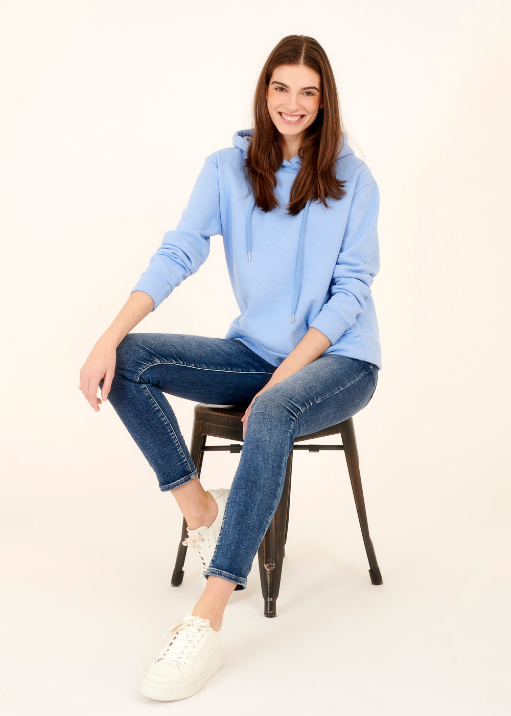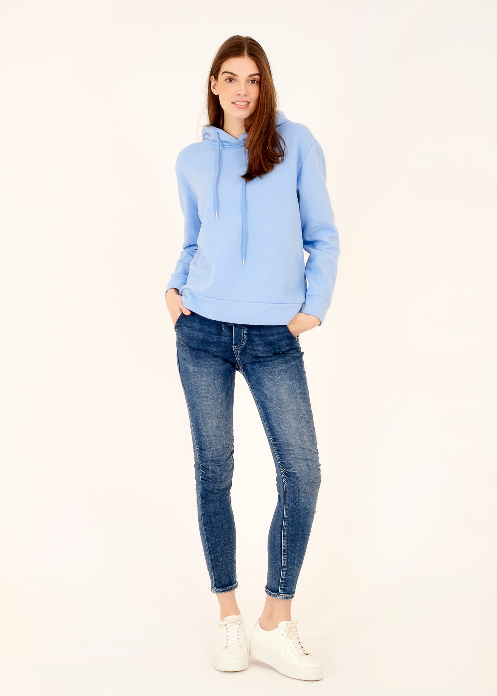 Der entspannte Schnitt und die gemütliche Kapuze machen diesen Pullover zu einem unkomplizierten Begleiter für deine Freizeit. Das weiche Material sorgt für ein angenehmes Tragegefühl, während die Kapuze mit "Gioia" auf der Rückseite einen spielerischen und motivierenden Touch verleiht.