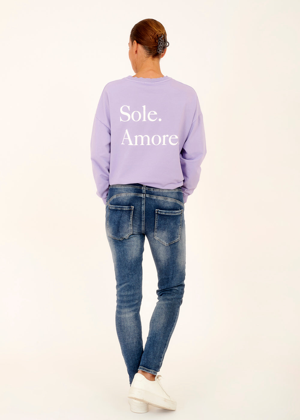 Das Model trägt bei einer Körpergröße von 179 cm die Konfektionsgröße S.