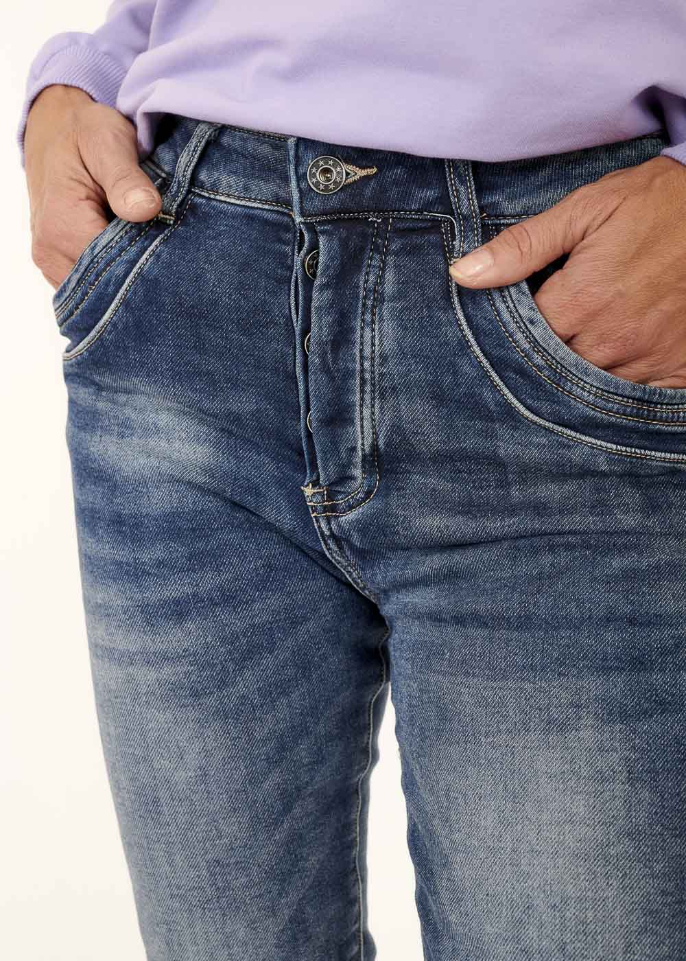 Unsere destroyed Denim mit hohem Elasthananteil, wird jetzt schon deine neue Lieblingsjeans. Die mittelblaue Waschung lässt sich wunderbar kombinieren. Das bequeme Material sitzt gemütlich und ermöglicht Bewegungsfreiheit. Der 5-Pocket Style und die Kombi mit Reißverschluss und Knopf runden den Look klassisch ab.
