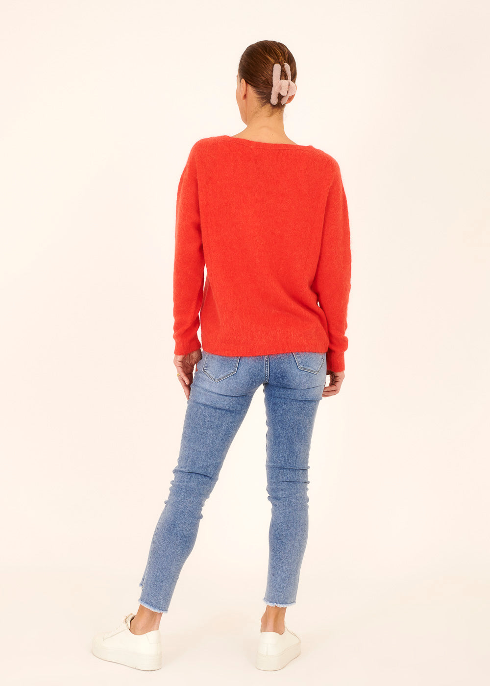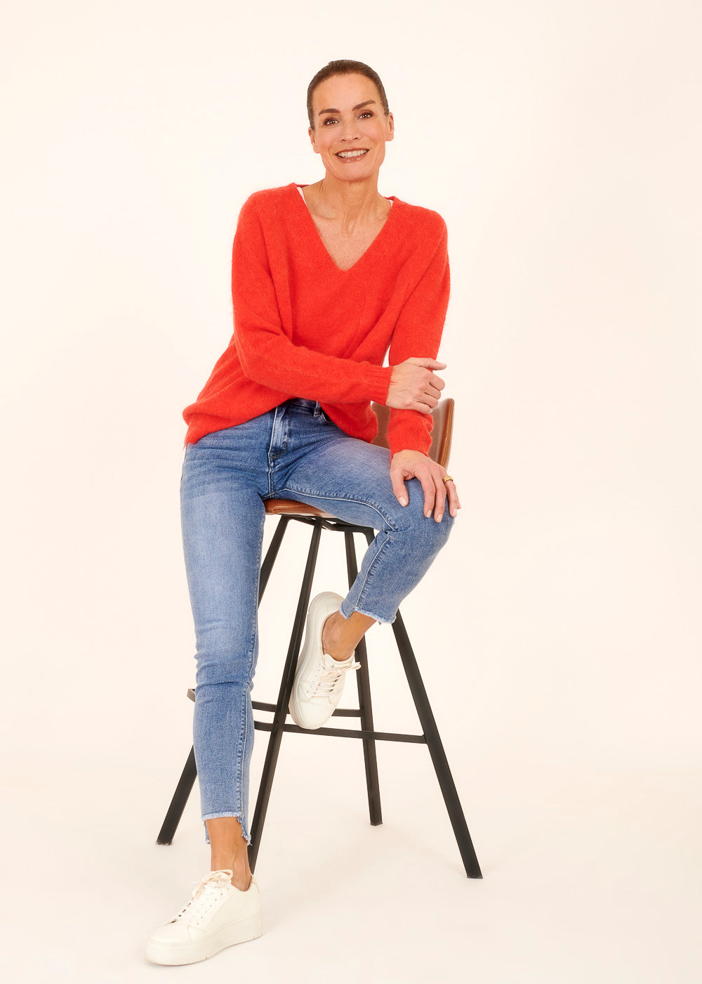 Der lässige Schnitt macht diesen Pullover zu einem vielseitigen Kleidungsstück, das sich mühelos in verschiedene Outfits integrieren lässt. Trage ihn zu Jeans für einen lockeren Alltagslook oder kombiniere ihn mit einer schickeren Hose für einen legeren Bürostyle.