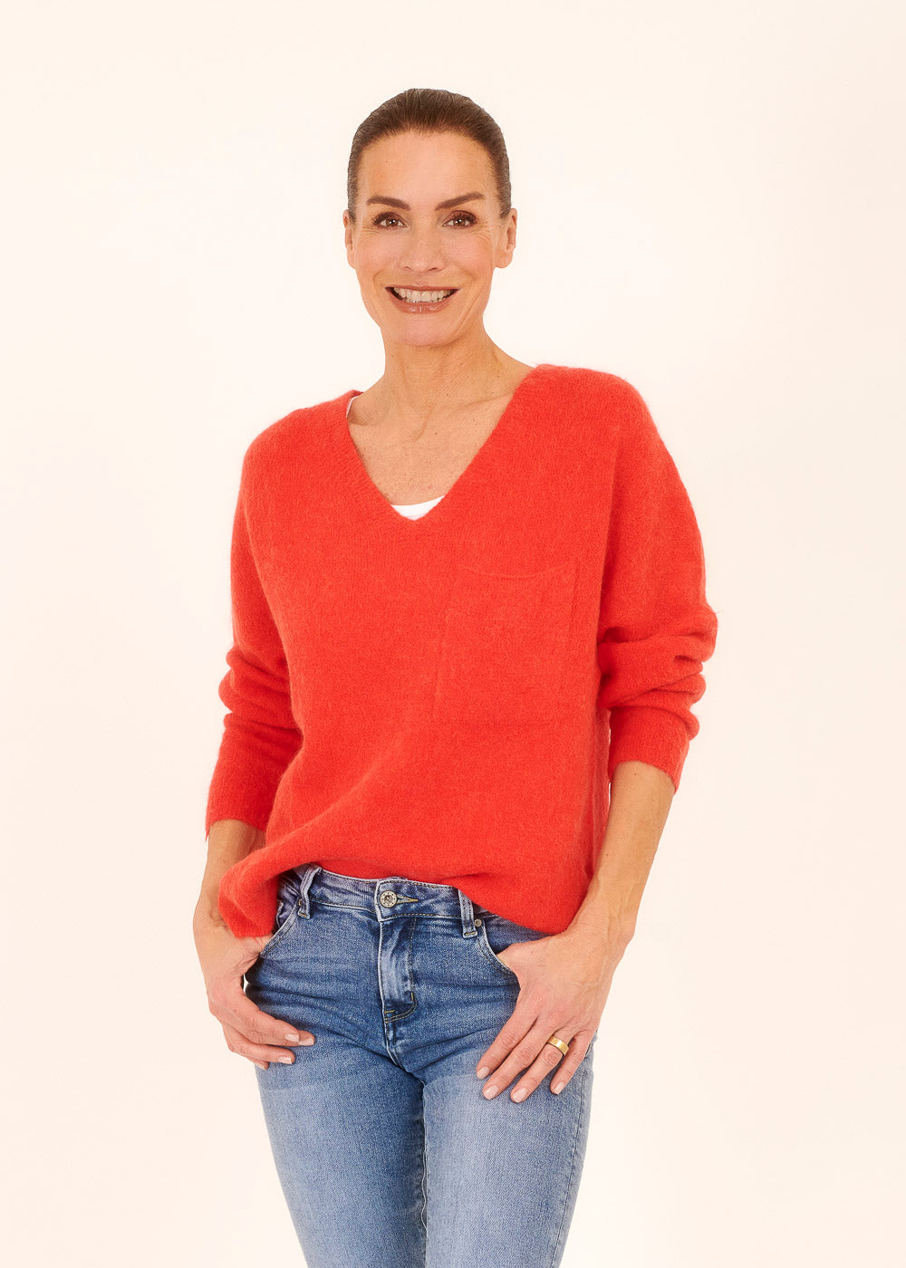 Mit dem weichen Alpaka-Material und der praktischen Brusttasche wird dieser Pullover schnell zu deinem Lieblingsstück.