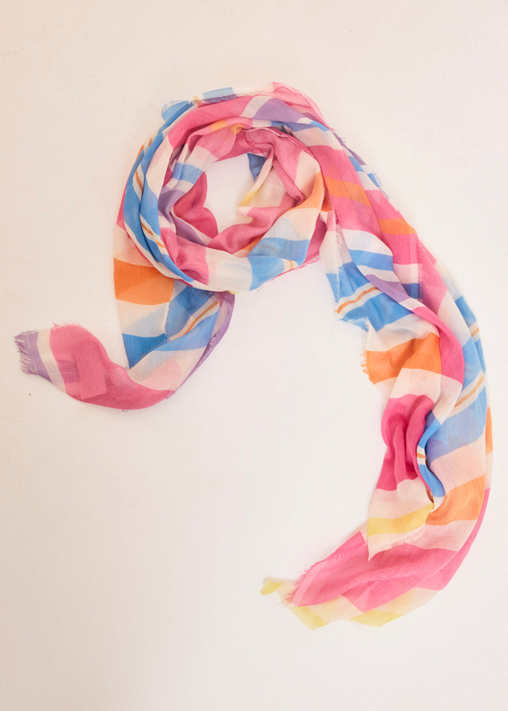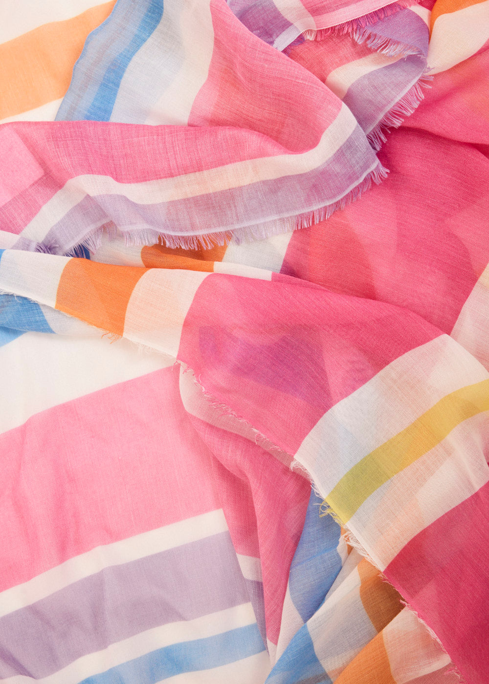 Das Tuch ist leicht und angenehm zu tragen. Mit seinen lebhaften Farben bringt es gute Laune in deinen Tag. Hol dir jetzt dieses bunte Seidentuch mit Streifen und verleih deinem Stil einen frischen Akzent!