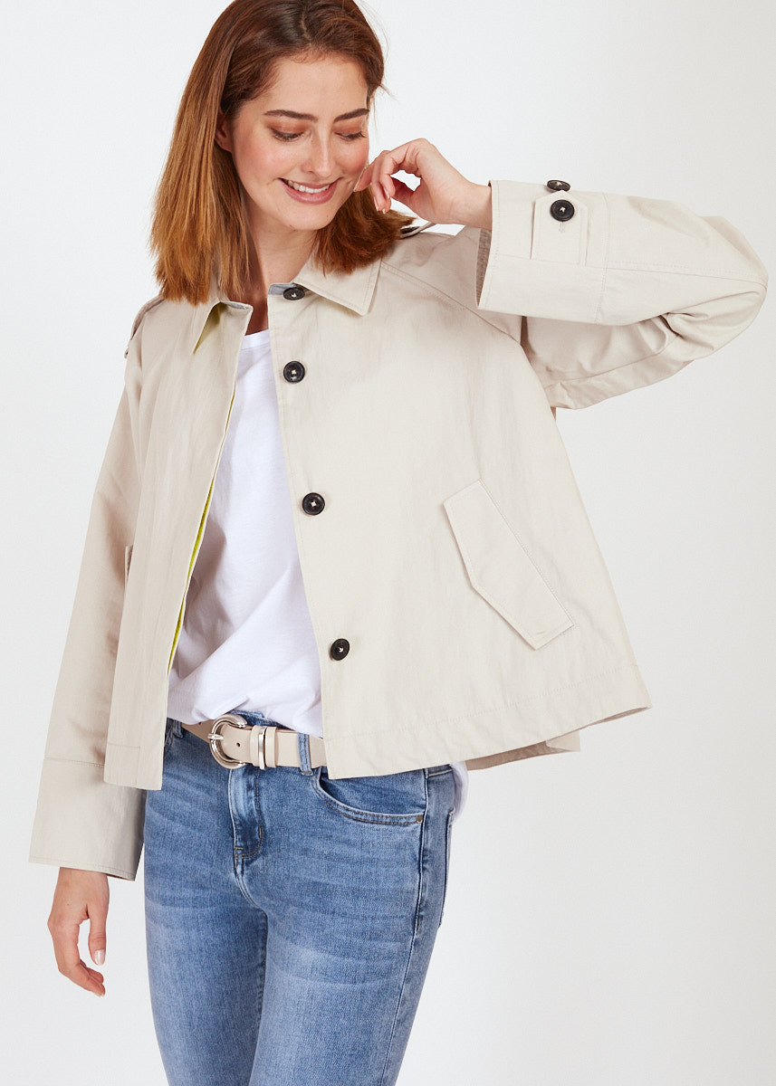 Entdecke noch heute den frischen Hauch des Frühlings mit meiner Beige-Kurzjacke und lasse dich von meinem unwiderstehlichen Charme verzaubern.