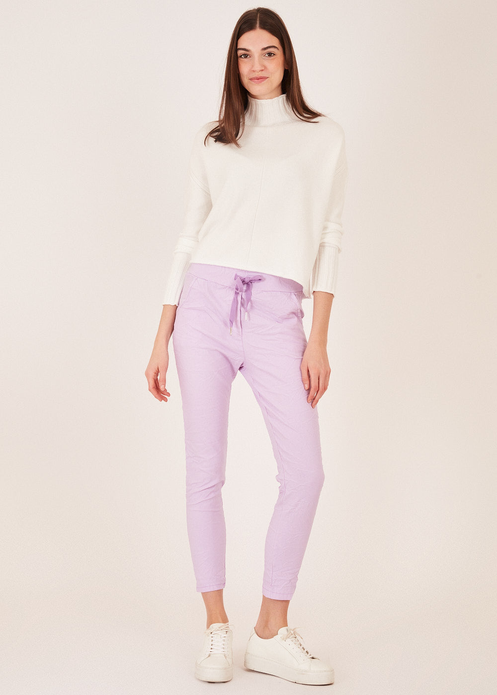 Unser Bestseller! Hose aus Viskose und Elasthan. Dadurch sitzt sie super bequem und lässt sich prima zu Allem kombinieren. Gummizug im Bund, Tunnelzug mit Band und seitliche Eingriffstaschen.