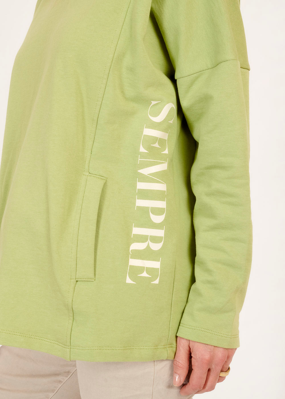 Hergestellt aus hochwertigem Sweatshirt-Stoff bietet dieses Kleidungsstück maximalen Tragekomfort und einen modernen Look. Die seitlichen Taschen verleihen ihm nicht nur einen Hauch von Funktionalität, sondern auch eine lässige Note, während der "Sempre" Druck in Weiß für einen zusätzlichen Akzent sorgt.