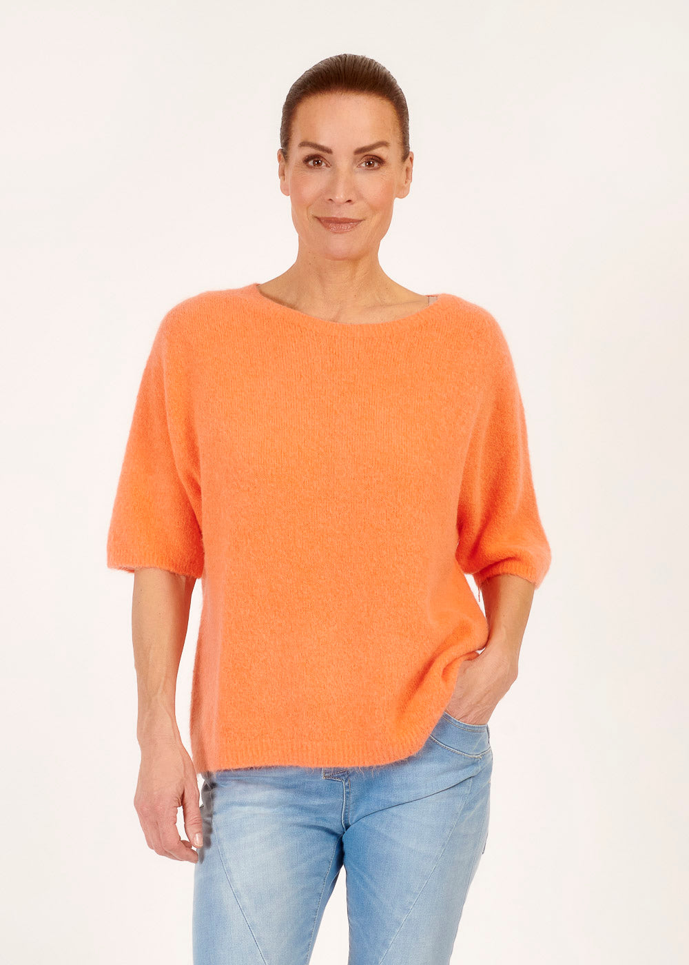 Hergestellt aus hochwertigem Material bietet dieser Pullover nicht nur ein angenehmes Tragegefühl, sondern auch einen Hauch von lebhafter Eleganz. Sein Halbarm-Design macht ihn perfekt für die wärmeren Tage, während die leuchtende Farbe Orange für einen auffälligen Akzent sorgt.