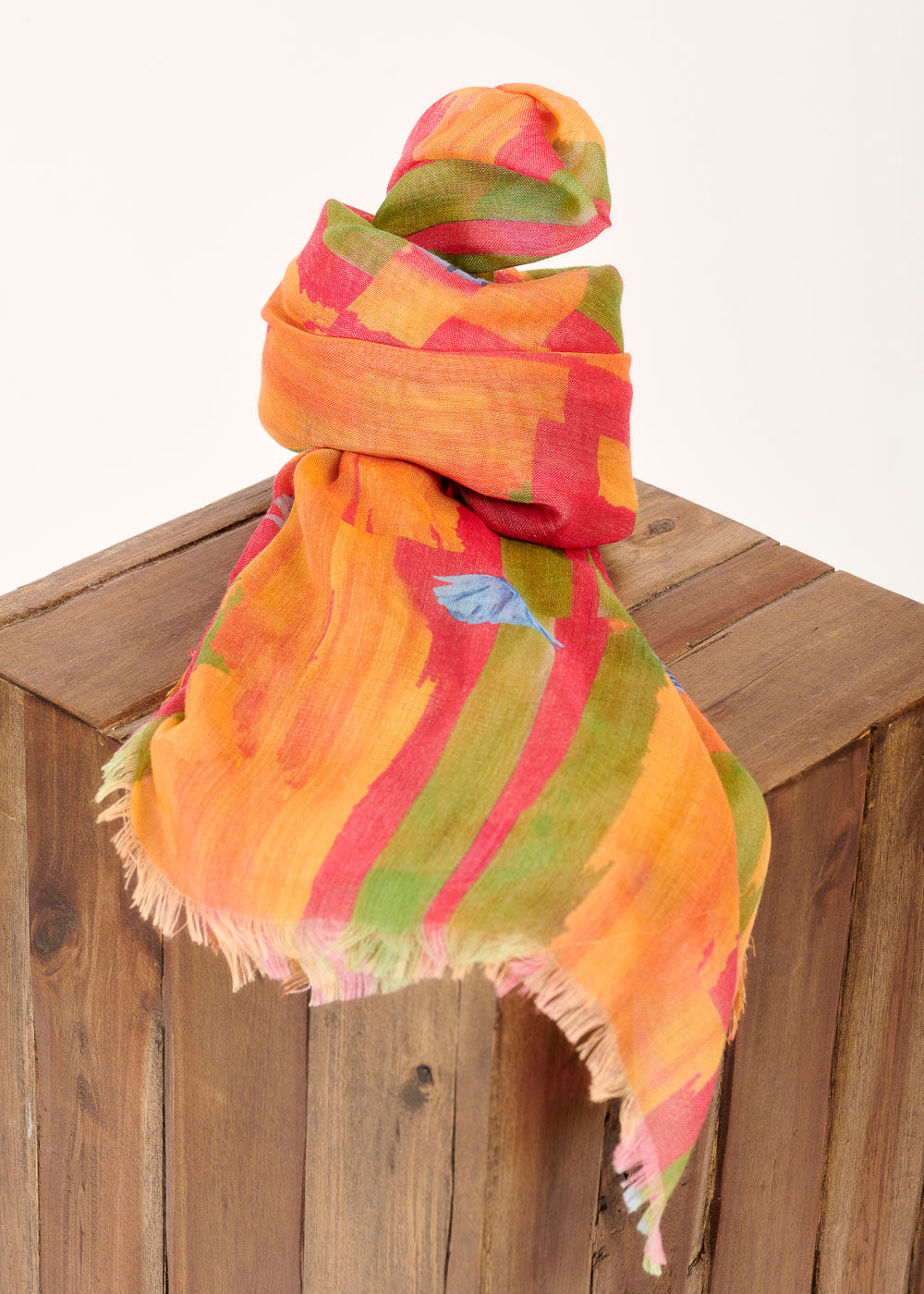 Hergestellt aus hochwertigem Material bietet dieser Schal nicht nur einen angenehmen Tragekomfort, sondern auch einen auffälligen Look. Das kontrastreiche Farbspiel von Orange und Pink verleiht ihm eine lebhafte und fröhliche Ausstrahlung, die jedes Outfit aufwertet.