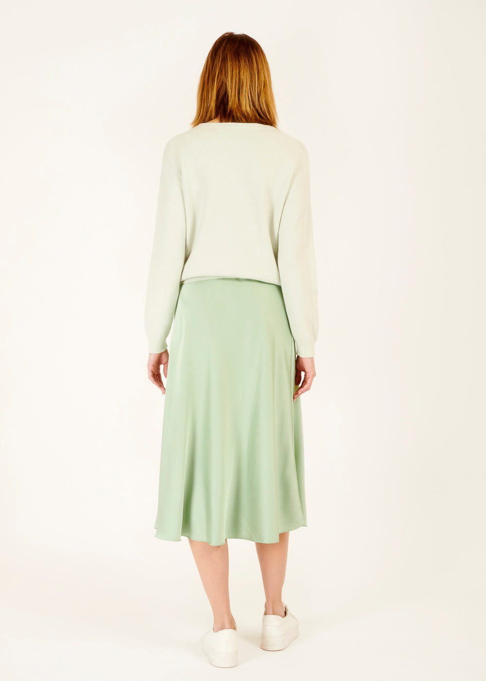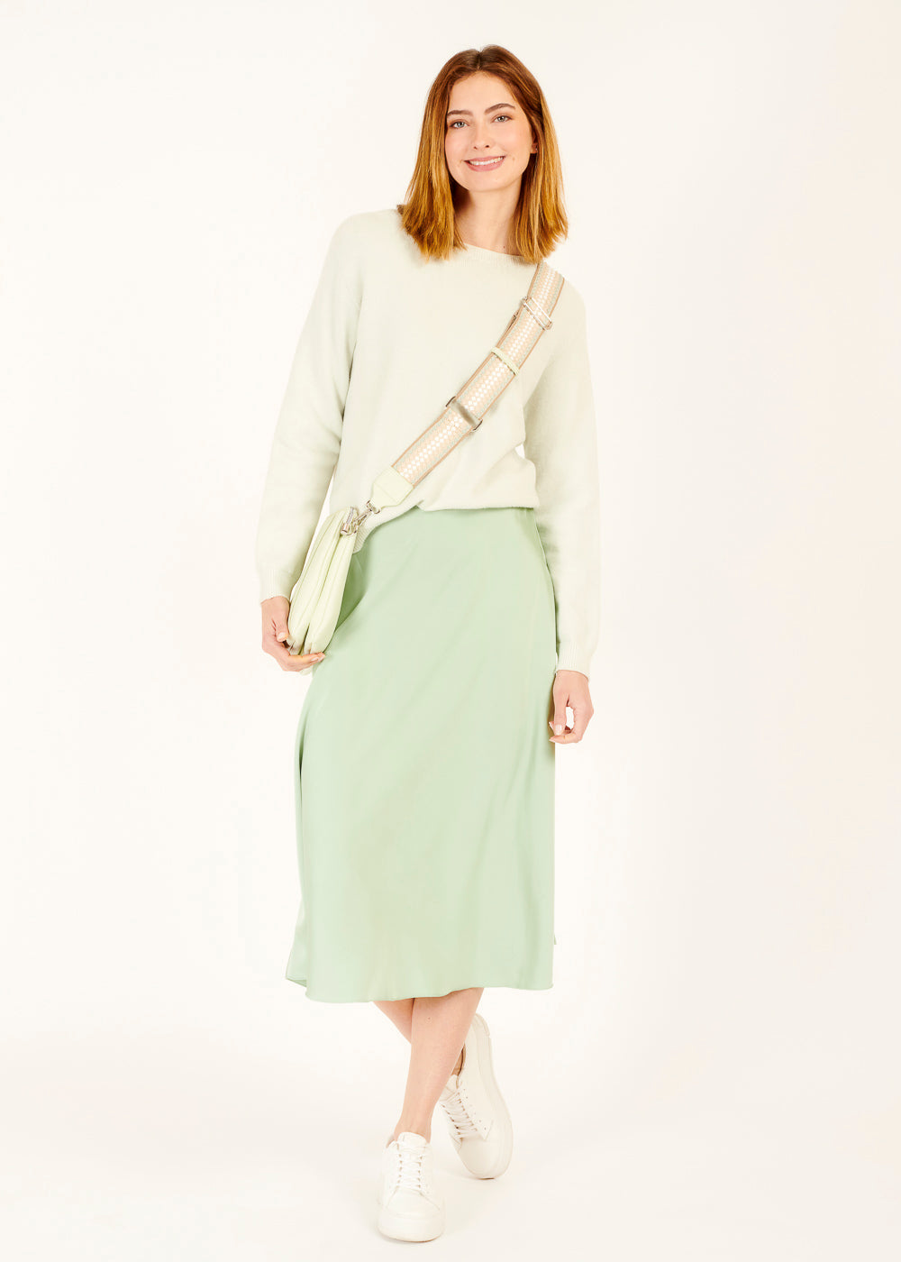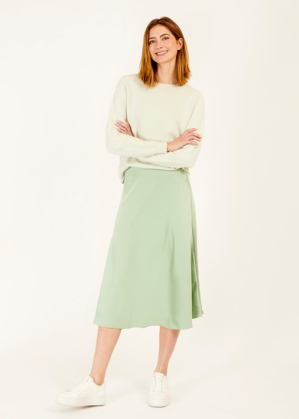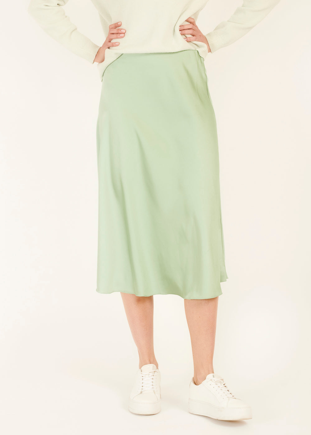 Mit seiner unaufdringlichen Eleganz und seinem zeitlosen Design ist dieser grüne Satinrock ein Kleidungsstück, das Sie immer wieder gerne tragen werden. Bestellen Sie jetzt und verleihen Sie Ihrem Look eine Prise Eleganz!