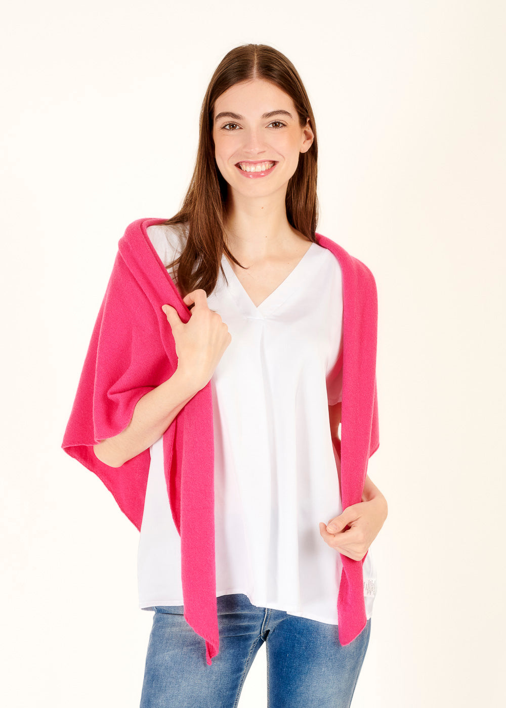 Umhülle dich in puren Luxus mit unserem Kaschmirtuch in leuchtendem Fuchsia. Ob als elegantes Accessoire um den Hals drapiert oder lässig über die Schultern geworfen, unser Kaschmirtuch verleiht deinem Look eine unwiderstehliche Raffinesse. Es ist das perfekte Begleiter für jeden Anlass, sei es ein formelles Event oder ein entspannter Tag in der Stadt.