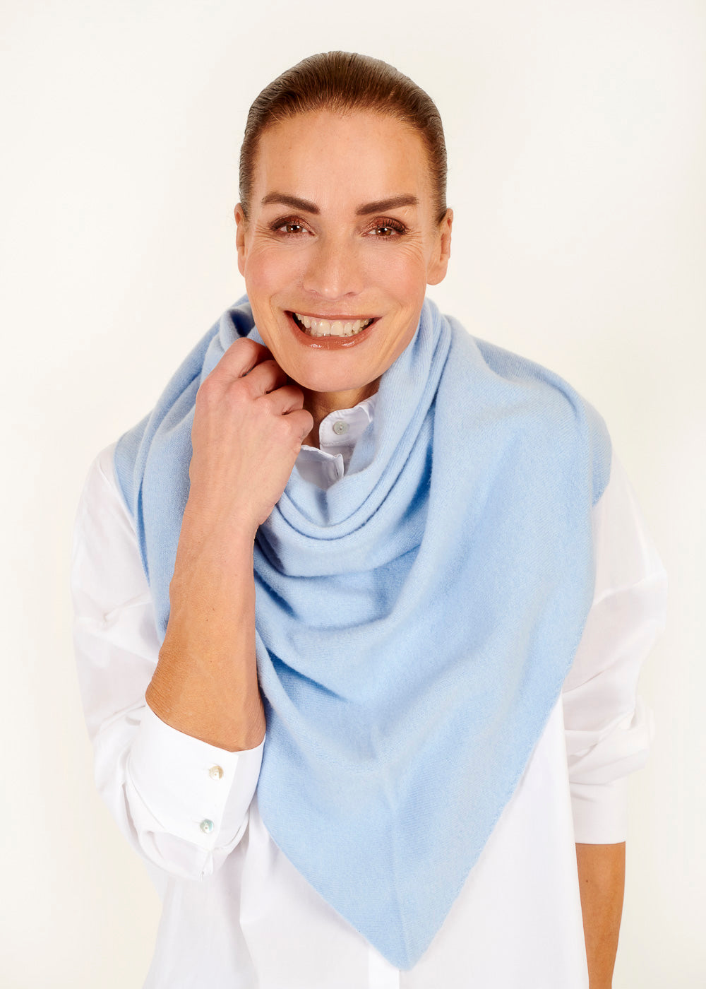 Unser geliebter Dreieckschal aus 100% feinsten Kaschmir. Für den absoluten Wohlfühl-Look. Es hat fein umsäuberte Kanten. Dieser besonders weiche Dreiecksschal  lässt sich zum Strickkleid kombinieren, indem du es als Stola nutzt. Darüber hinaus ist es auch ein stylischer Begleiter zu unseren neuen Looks. Ein absoluter Alltagsheld, der jedem Outfit einen großartigen Touch verleiht.