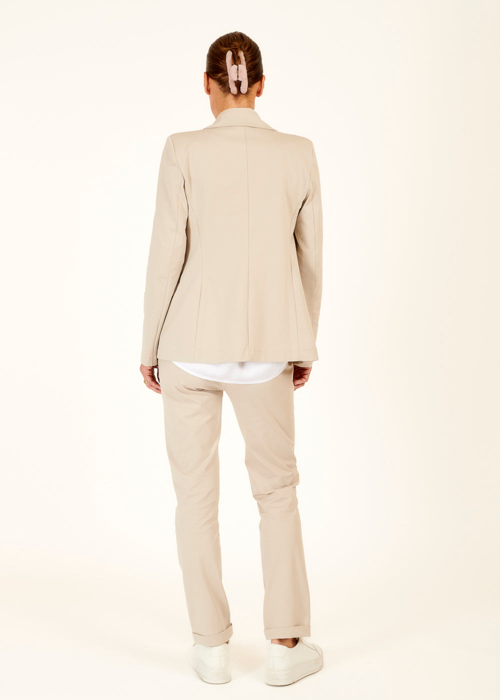 Dieser Blazer verkörpert zurückhaltende Eleganz und unverwechselbaren Chic. In einem dezenten Beigeton gehalten, strahlt er eine natürliche Raffinesse aus, die zu jeder Gelegenheit passt – sei es im Büro, bei einem geschäftlichen Meeting oder einem eleganten Abendessen.
