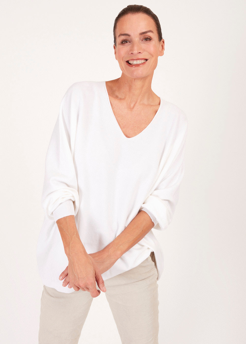 Entdecke unseren Oversized-Pullover in bianco-otticio für einen modernen und zeitlosen Look. Er bietet dir Komfort und Stil aus hochwertigen Materialien für jede Gelegenheit.