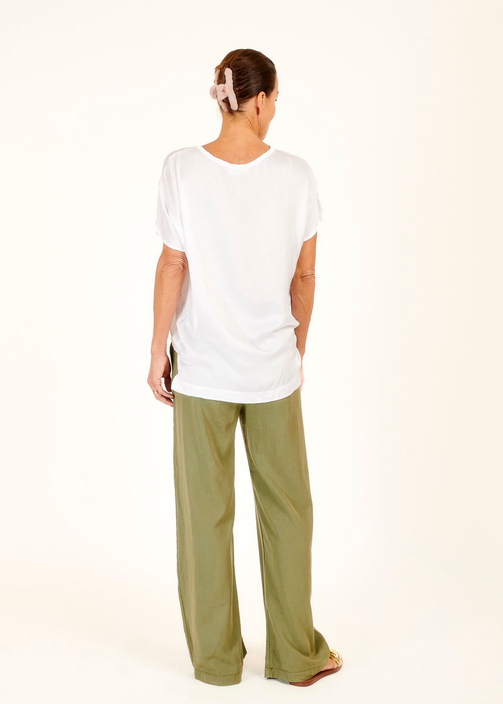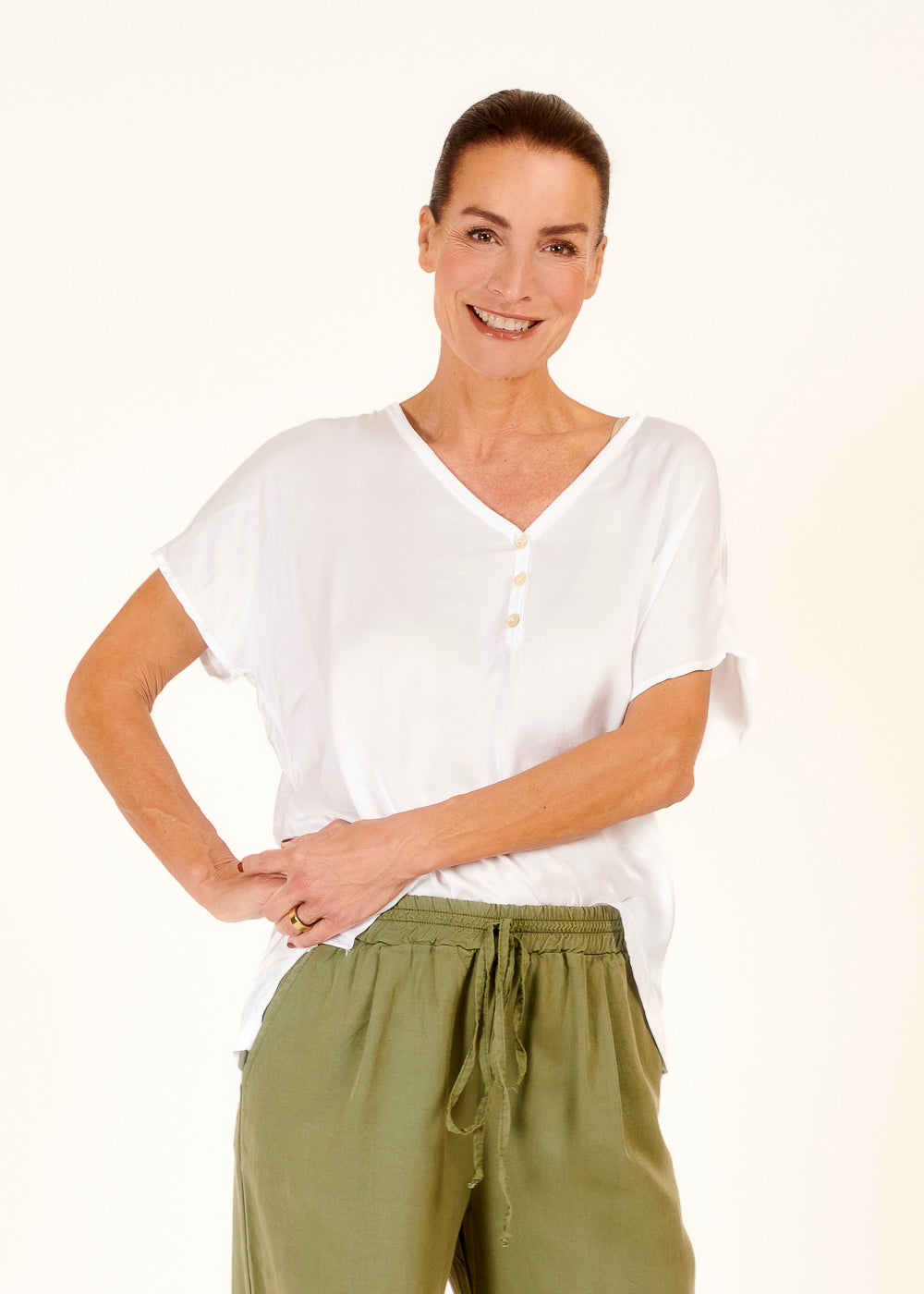 Unsere Tunikabluse in Bianco Ottico bietet zeitlose Eleganz und vielseitigen Stil. Die klare Farbe und das ansprechende Design machen sie zum perfekten Kleidungsstück für eine stilvolle Garderobe, das sich leicht mit verschiedenen Outfits kombinieren lässt.